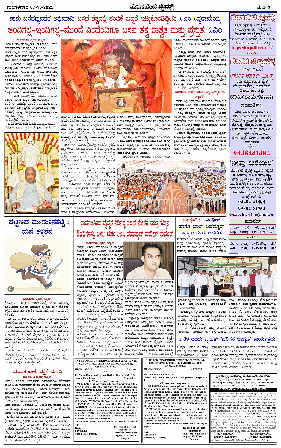 ಮಾಧ್ಯಮ ಅಕಾಡೆಮಿ ಪ್ರಶಸ್ತಿ ಪುರಸ್ಕೃತ 'ಹೊಸಪೇಟೆ ಟೈಮ್ಸ್' Page: 3 October 07, 2025 << First << 3 >> Last >> Page 1Page 2Page 3Page 4 × ಮಾಧ್ಯಮ ಅಕಾಡೆಮಿ ಪ್ರಶಸ್ತಿ ಪುರಸ್ಕೃತ 'ಹೊಸಪೇಟೆ ಟೈಮ್ಸ್' HPT-07102025--4-page-001HPT-07102025--4-page-002HPT-07102025--4-page-003HPT-07102025--4-page-004 << First << 3 >> Last >> HPT-07102025--4-page-001HPT-07102025--4-page-002HPT-07102025--4-page-003HPT-07102025--4-page-004 HPT-07102025--4-page-003
