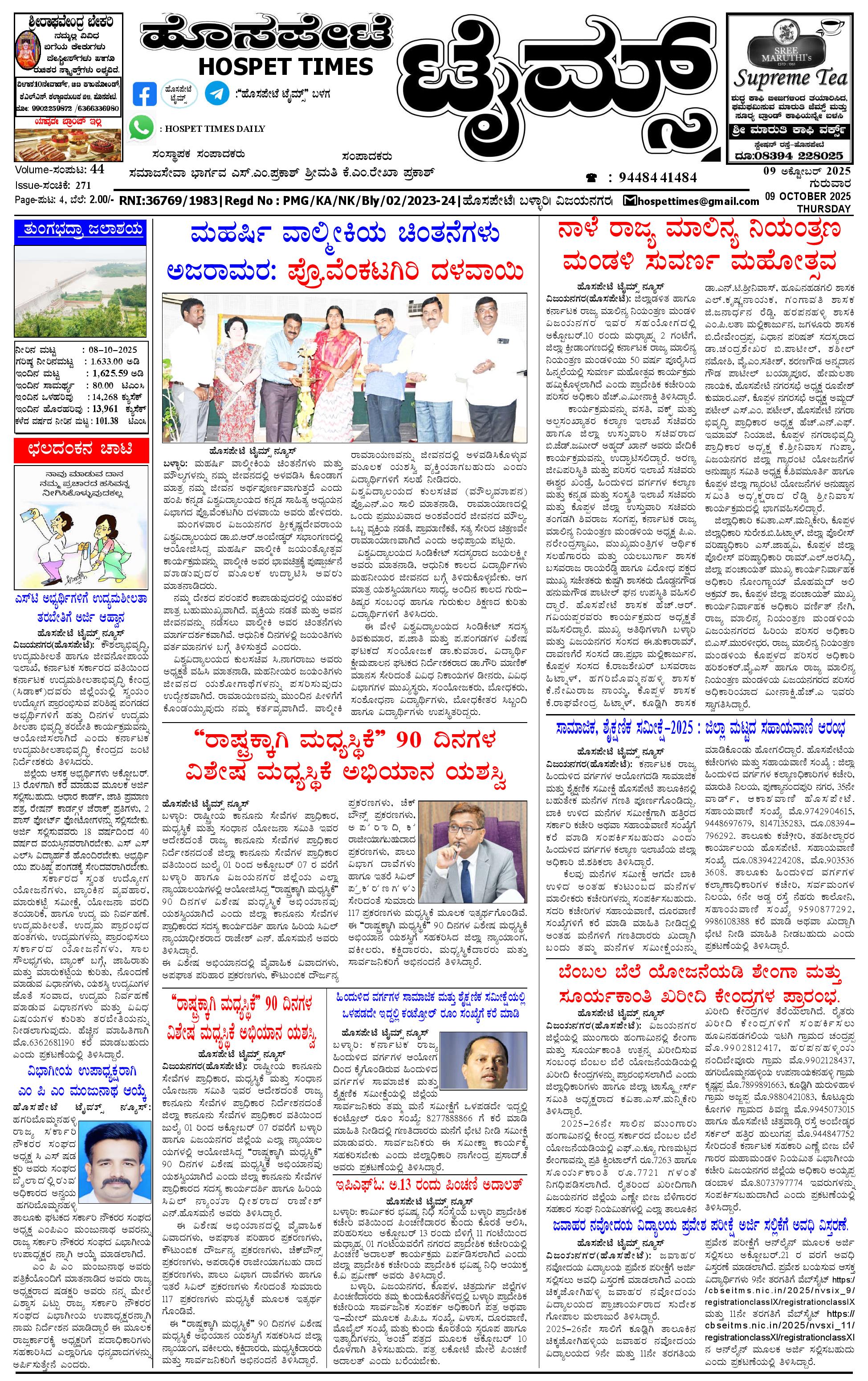 ಮಾಧ್ಯಮ ಅಕಾಡೆಮಿ ಪ್ರಶಸ್ತಿ ಪುರಸ್ಕೃತ 'ಹೊಸಪೇಟೆ ಟೈಮ್ಸ್' October 09, 2025 << First << 1 >> Last >> Page 1Page 2Page 3Page 4 × ಮಾಧ್ಯಮ ಅಕಾಡೆಮಿ ಪ್ರಶಸ್ತಿ ಪುರಸ್ಕೃತ 'ಹೊಸಪೇಟೆ ಟೈಮ್ಸ್' HPT-09102025--4-page-001HPT-09102025--4-page-002HPT-09102025--4-page-003HPT-09102025--4-page-004 << First << 1 >> Last >> HPT-09102025--4-page-001HPT-09102025--4-page-002HPT-09102025--4-page-003HPT-09102025--4-page-004 HPT-09102025--4-page-001