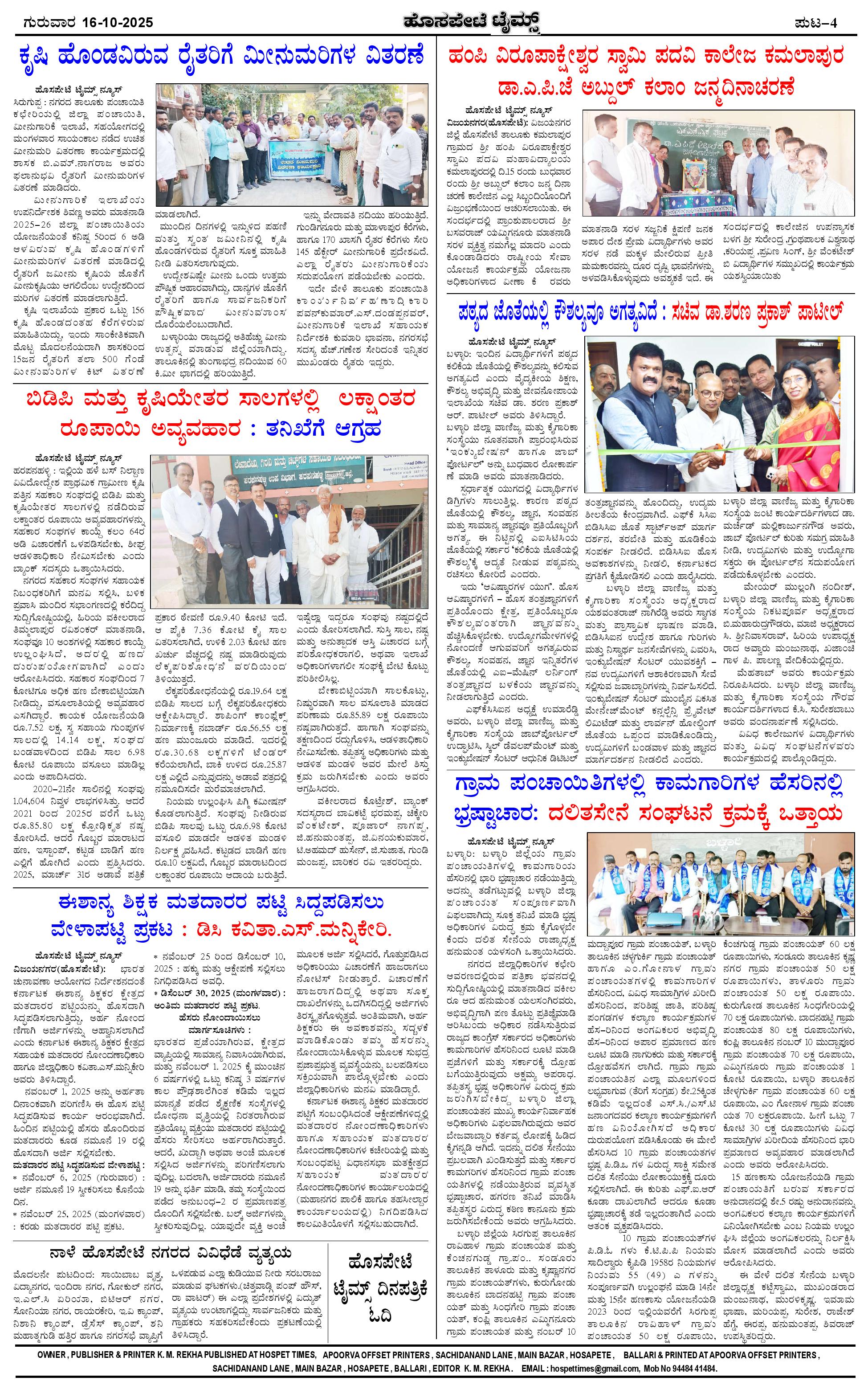 ಮಾಧ್ಯಮ ಅಕಾಡೆಮಿ ಪ್ರಶಸ್ತಿ ಪುರಸ್ಕೃತ 'ಹೊಸಪೇಟೆ ಟೈಮ್ಸ್' Page: 4 October 16, 2025 << First << 4 >> Last >> Page 1Page 2Page 3Page 4 × ಮಾಧ್ಯಮ ಅಕಾಡೆಮಿ ಪ್ರಶಸ್ತಿ ಪುರಸ್ಕೃತ 'ಹೊಸಪೇಟೆ ಟೈಮ್ಸ್' HPT-16102025--4-page-001HPT-16102025--4-page-002HPT-16102025--4-page-003HPT-16102025--4-page-004 << First << 4 >> Last >> HPT-16102025--4-page-001HPT-16102025--4-page-002HPT-16102025--4-page-003HPT-16102025--4-page-004 HPT-16102025--4-page-004