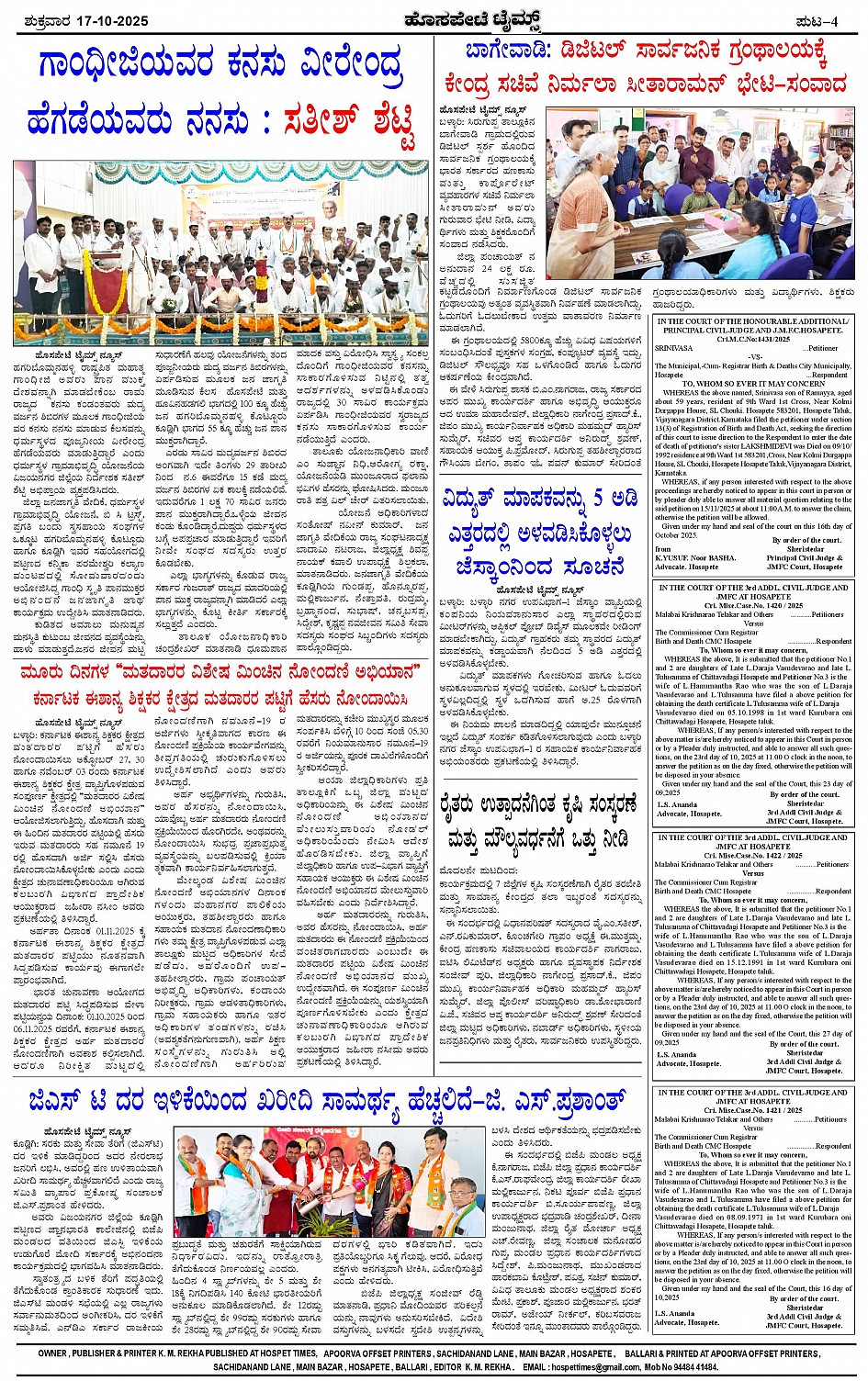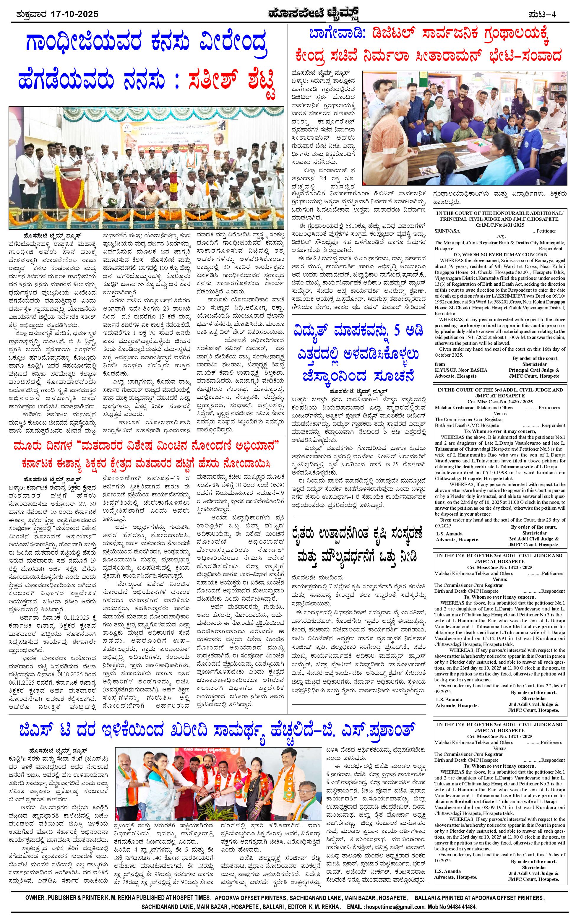 ಮಾಧ್ಯಮ ಅಕಾಡೆಮಿ ಪ್ರಶಸ್ತಿ ಪುರಸ್ಕೃತ 'ಹೊಸಪೇಟೆ ಟೈಮ್ಸ್' Page: 4 October 17, 2025 << First << 4 >> Last >> Page 1Page 2Page 3Page 4 × ಮಾಧ್ಯಮ ಅಕಾಡೆಮಿ ಪ್ರಶಸ್ತಿ ಪುರಸ್ಕೃತ 'ಹೊಸಪೇಟೆ ಟೈಮ್ಸ್' HPT-17102025--4-page-001HPT-17102025--4-page-002HPT-17102025--4-page-003HPT-17102025--4-page-004 << First << 4 >> Last >> HPT-17102025--4-page-001HPT-17102025--4-page-002HPT-17102025--4-page-003HPT-17102025--4-page-004 HPT-17102025--4-page-004