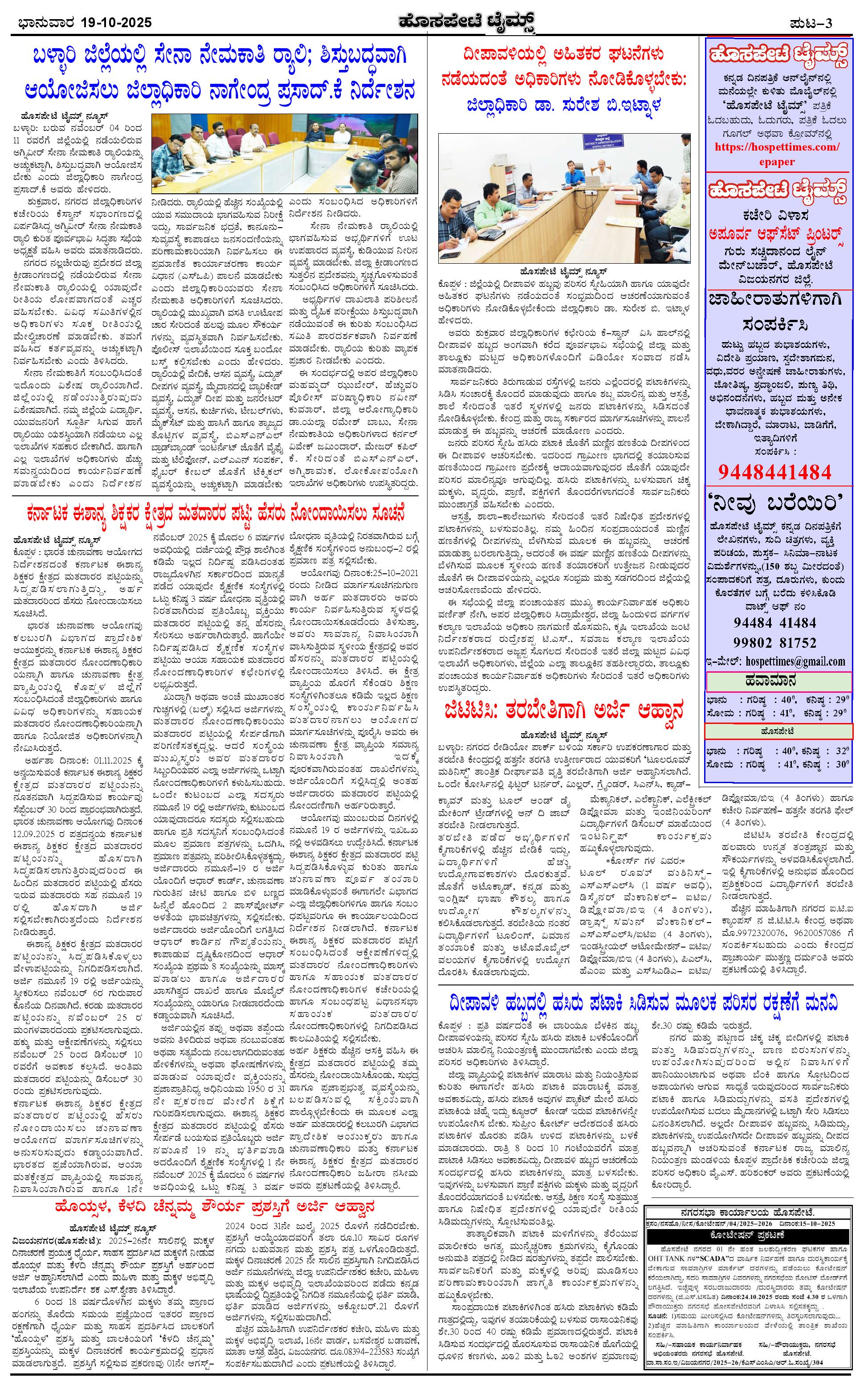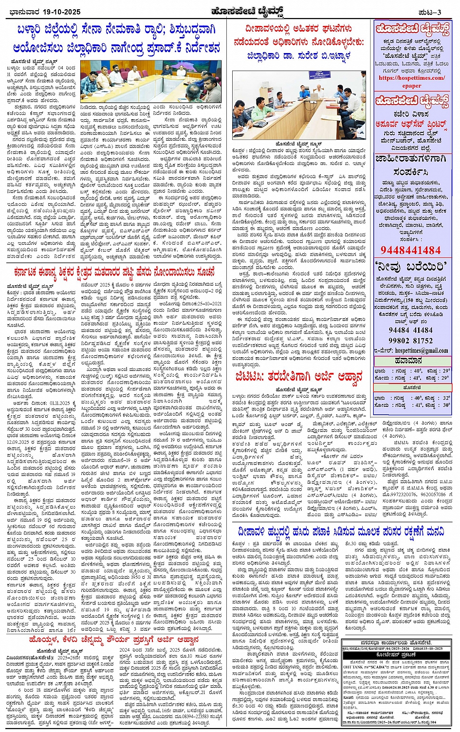 ಮಾಧ್ಯಮ ಅಕಾಡೆಮಿ ಪ್ರಶಸ್ತಿ ಪುರಸ್ಕೃತ 'ಹೊಸಪೇಟೆ ಟೈಮ್ಸ್' Page: 3 October 19, 2025 << First << 3 >> Last >> Page 1Page 2Page 3Page 4 × ಮಾಧ್ಯಮ ಅಕಾಡೆಮಿ ಪ್ರಶಸ್ತಿ ಪುರಸ್ಕೃತ 'ಹೊಸಪೇಟೆ ಟೈಮ್ಸ್' HPT-19102025--4-page-001HPT-19102025--4-page-002HPT-19102025--4-page-003HPT-19102025--4-page-004 << First << 3 >> Last >> HPT-19102025--4-page-001HPT-19102025--4-page-002HPT-19102025--4-page-003HPT-19102025--4-page-004 HPT-19102025--4-page-003