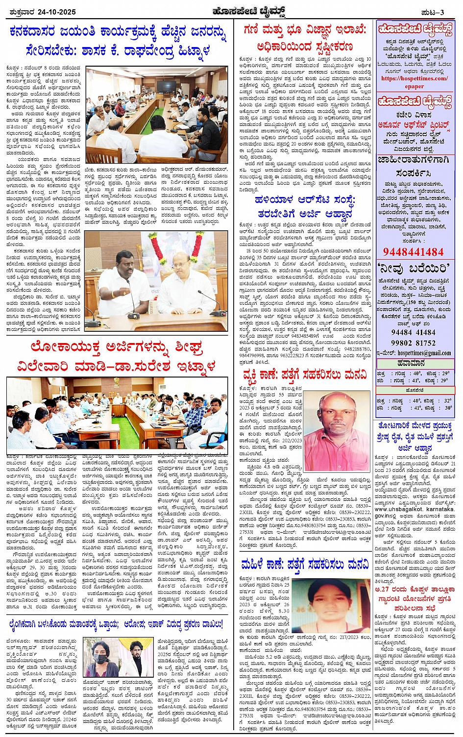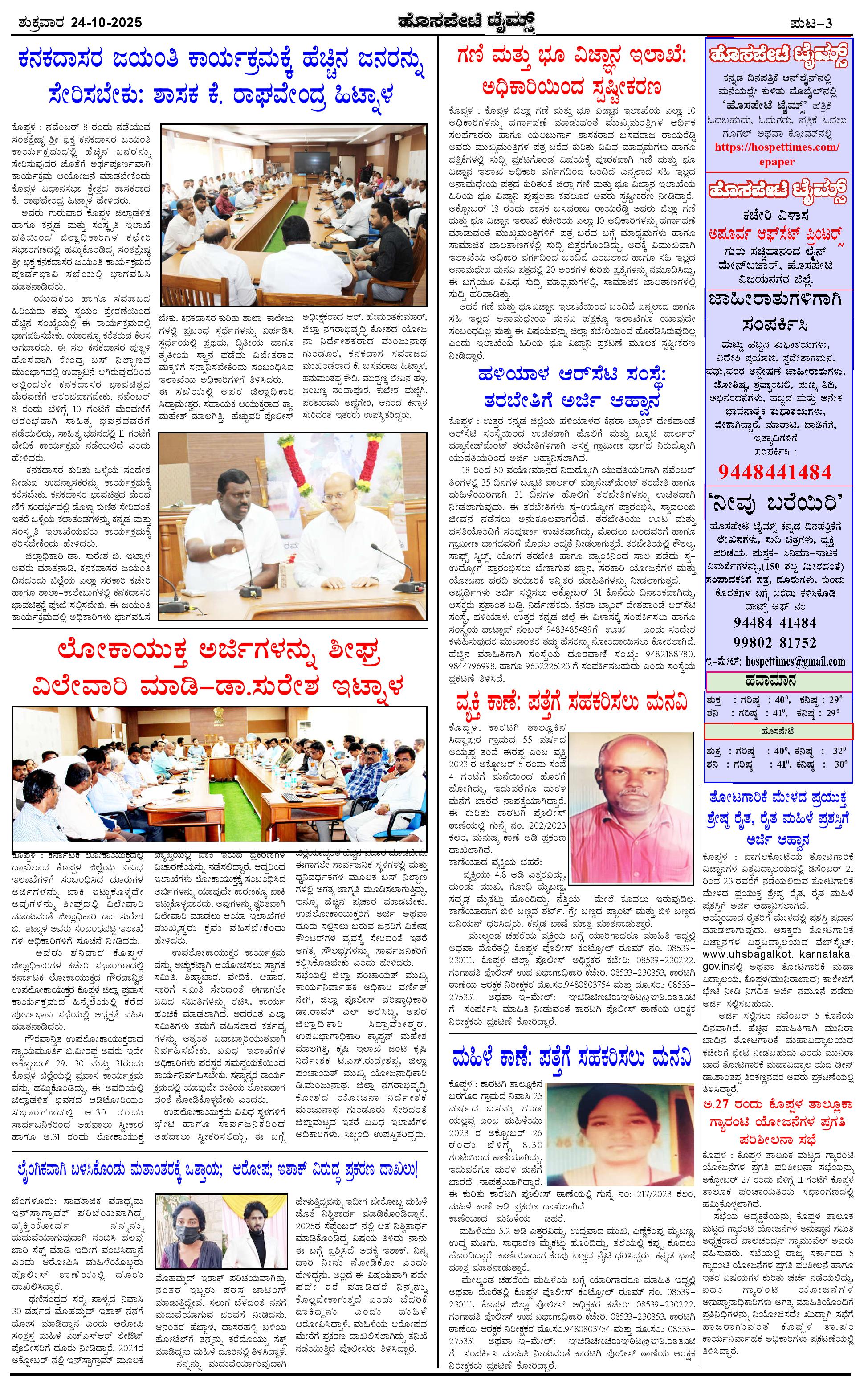 ಮಾಧ್ಯಮ ಅಕಾಡೆಮಿ ಪ್ರಶಸ್ತಿ ಪುರಸ್ಕೃತ 'ಹೊಸಪೇಟೆ ಟೈಮ್ಸ್' Page: 3 October 24, 2025 << First << 3 >> Last >> Page 1Page 2Page 3Page 4 × ಮಾಧ್ಯಮ ಅಕಾಡೆಮಿ ಪ್ರಶಸ್ತಿ ಪುರಸ್ಕೃತ 'ಹೊಸಪೇಟೆ ಟೈಮ್ಸ್' HPT-24102025--4-page-001HPT-24102025--4-page-002HPT-24102025--4-page-003HPT-24102025--4-page-004 << First << 3 >> Last >> HPT-24102025--4-page-001HPT-24102025--4-page-002HPT-24102025--4-page-003HPT-24102025--4-page-004 HPT-24102025--4-page-003