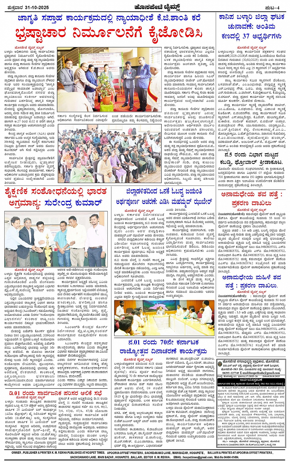 ಮಾಧ್ಯಮ ಅಕಾಡೆಮಿ ಪ್ರಶಸ್ತಿ ಪುರಸ್ಕೃತ 'ಹೊಸಪೇಟೆ ಟೈಮ್ಸ್' Page: 4 October 31, 2025 << First << 4 >> Last >> Page 1Page 2Page 3Page 4 × ಮಾಧ್ಯಮ ಅಕಾಡೆಮಿ ಪ್ರಶಸ್ತಿ ಪುರಸ್ಕೃತ 'ಹೊಸಪೇಟೆ ಟೈಮ್ಸ್' HPT-31102025--4-page-001HPT-31102025--4-page-002HPT-31102025--4-page-003HPT-31102025--4-page-004 << First << 4 >> Last >> HPT-31102025--4-page-001HPT-31102025--4-page-002HPT-31102025--4-page-003HPT-31102025--4-page-004 HPT-31102025--4-page-004