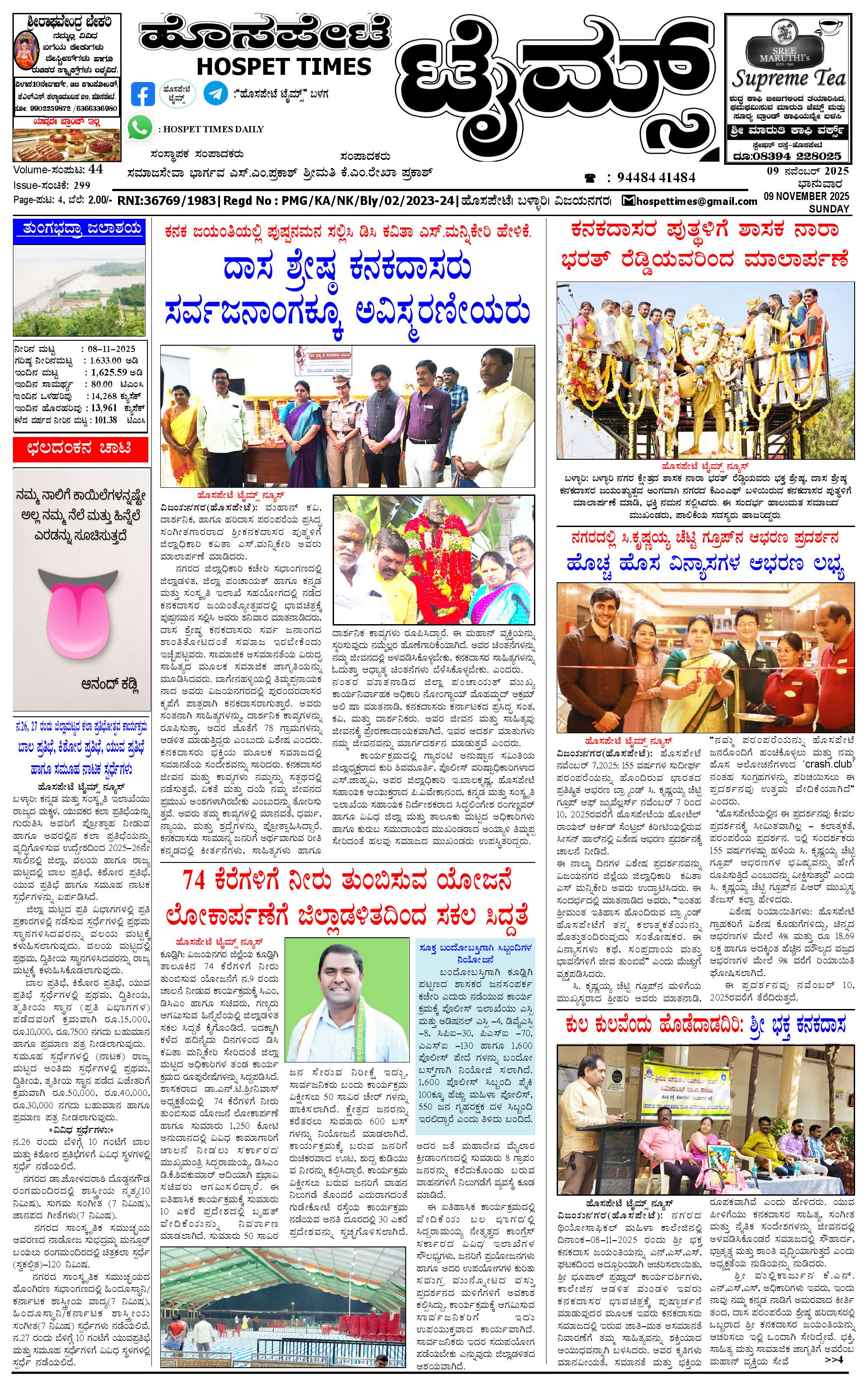 ಮಾಧ್ಯಮ ಅಕಾಡೆಮಿ ಪ್ರಶಸ್ತಿ ಪುರಸ್ಕೃತ 'ಹೊಸಪೇಟೆ ಟೈಮ್ಸ್' November 09, 2025 << First << 1 >> Last >> Page 1Page 2Page 3Page 4 × ಮಾಧ್ಯಮ ಅಕಾಡೆಮಿ ಪ್ರಶಸ್ತಿ ಪುರಸ್ಕೃತ 'ಹೊಸಪೇಟೆ ಟೈಮ್ಸ್' HPT-09112025-4-page-001HPT-09112025-4-page-002HPT-09112025-4-page-003HPT-09112025-4-page-004 << First << 1 >> Last >> HPT-09112025-4-page-001HPT-09112025-4-page-002HPT-09112025-4-page-003HPT-09112025-4-page-004 HPT-09112025-4-page-001
