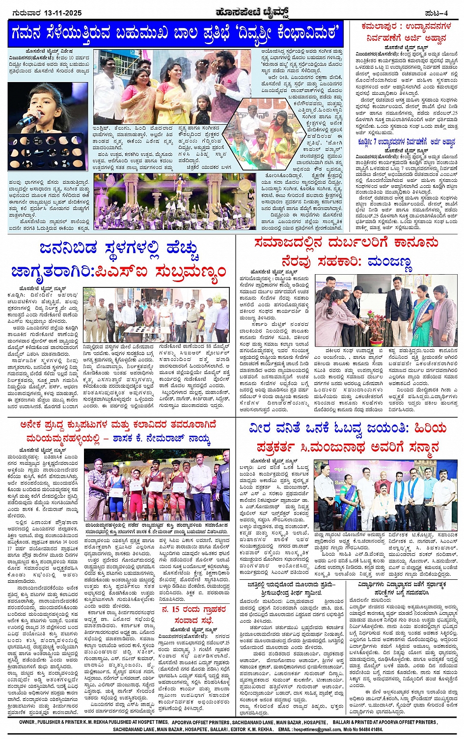 ಮಾಧ್ಯಮ ಅಕಾಡೆಮಿ ಪ್ರಶಸ್ತಿ ಪುರಸ್ಕೃತ 'ಹೊಸಪೇಟೆ ಟೈಮ್ಸ್' Page: 4 November 13, 2025 << First << 4 >> Last >> Page 1Page 2Page 3Page 4 × ಮಾಧ್ಯಮ ಅಕಾಡೆಮಿ ಪ್ರಶಸ್ತಿ ಪುರಸ್ಕೃತ 'ಹೊಸಪೇಟೆ ಟೈಮ್ಸ್' HPT-13112025--4-page-001HPT-13112025--4-page-002HPT-13112025--4-page-003HPT-13112025--4-page-004 << First << 4 >> Last >> HPT-13112025--4-page-001HPT-13112025--4-page-002HPT-13112025--4-page-003HPT-13112025--4-page-004 HPT-13112025--4-page-004