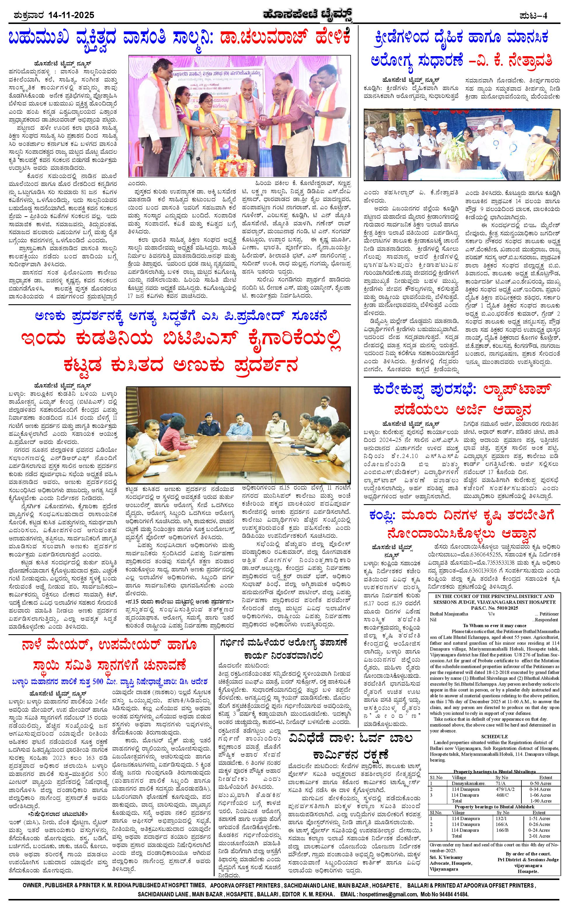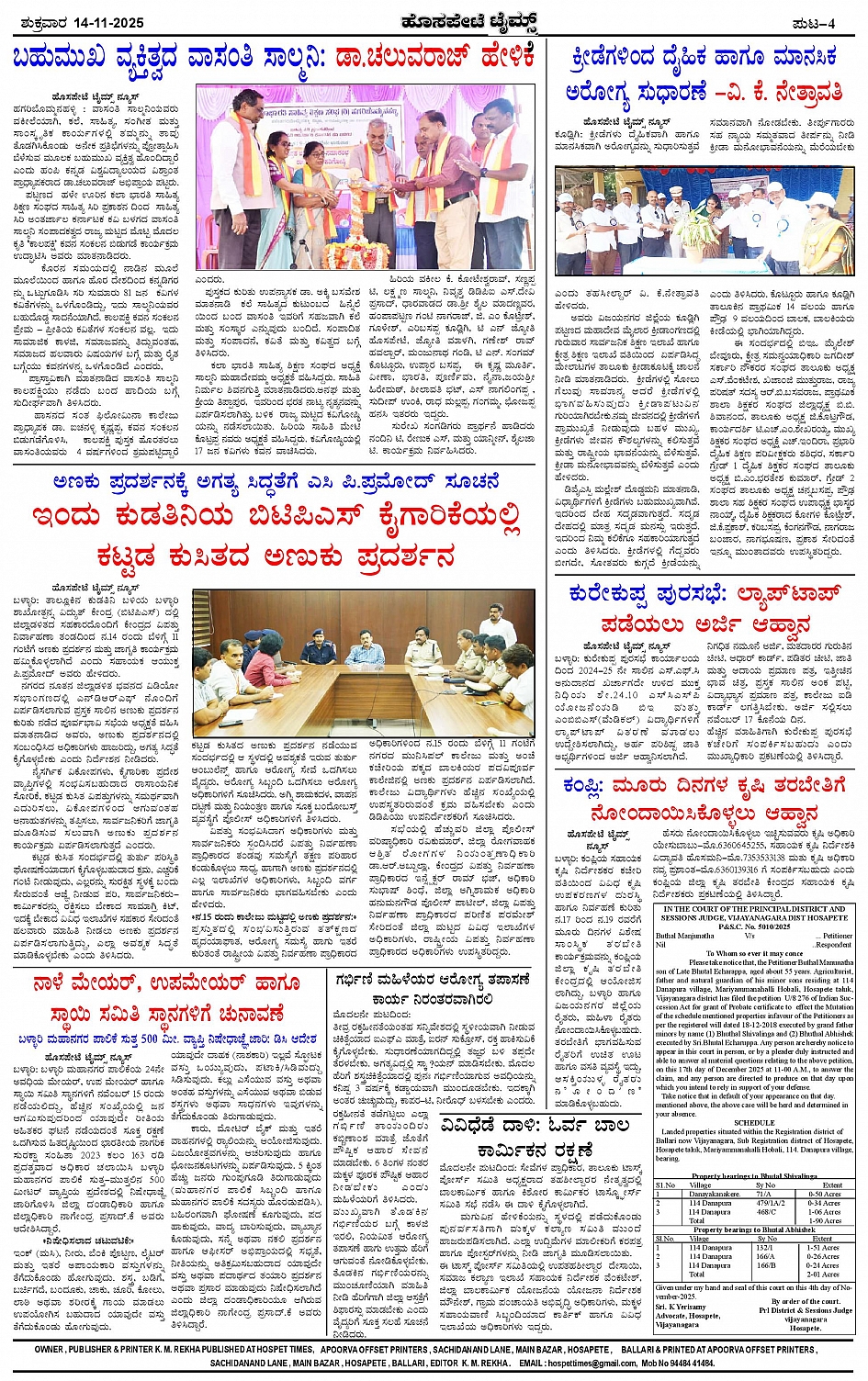 ಮಾಧ್ಯಮ ಅಕಾಡೆಮಿ ಪ್ರಶಸ್ತಿ ಪುರಸ್ಕೃತ 'ಹೊಸಪೇಟೆ ಟೈಮ್ಸ್' Page: 4 November 14, 2025 << First << 4 >> Last >> Page 1Page 2Page 3Page 4 × ಮಾಧ್ಯಮ ಅಕಾಡೆಮಿ ಪ್ರಶಸ್ತಿ ಪುರಸ್ಕೃತ 'ಹೊಸಪೇಟೆ ಟೈಮ್ಸ್' HPT-14112025-4 PAGE-page-001HPT-14112025-4 PAGE-page-002HPT-14112025-4 PAGE-page-003HPT-14112025-4 PAGE-page-004 << First << 4 >> Last >> HPT-14112025-4 PAGE-page-001HPT-14112025-4 PAGE-page-002HPT-14112025-4 PAGE-page-003HPT-14112025-4 PAGE-page-004 HPT-14112025-4 PAGE-page-004