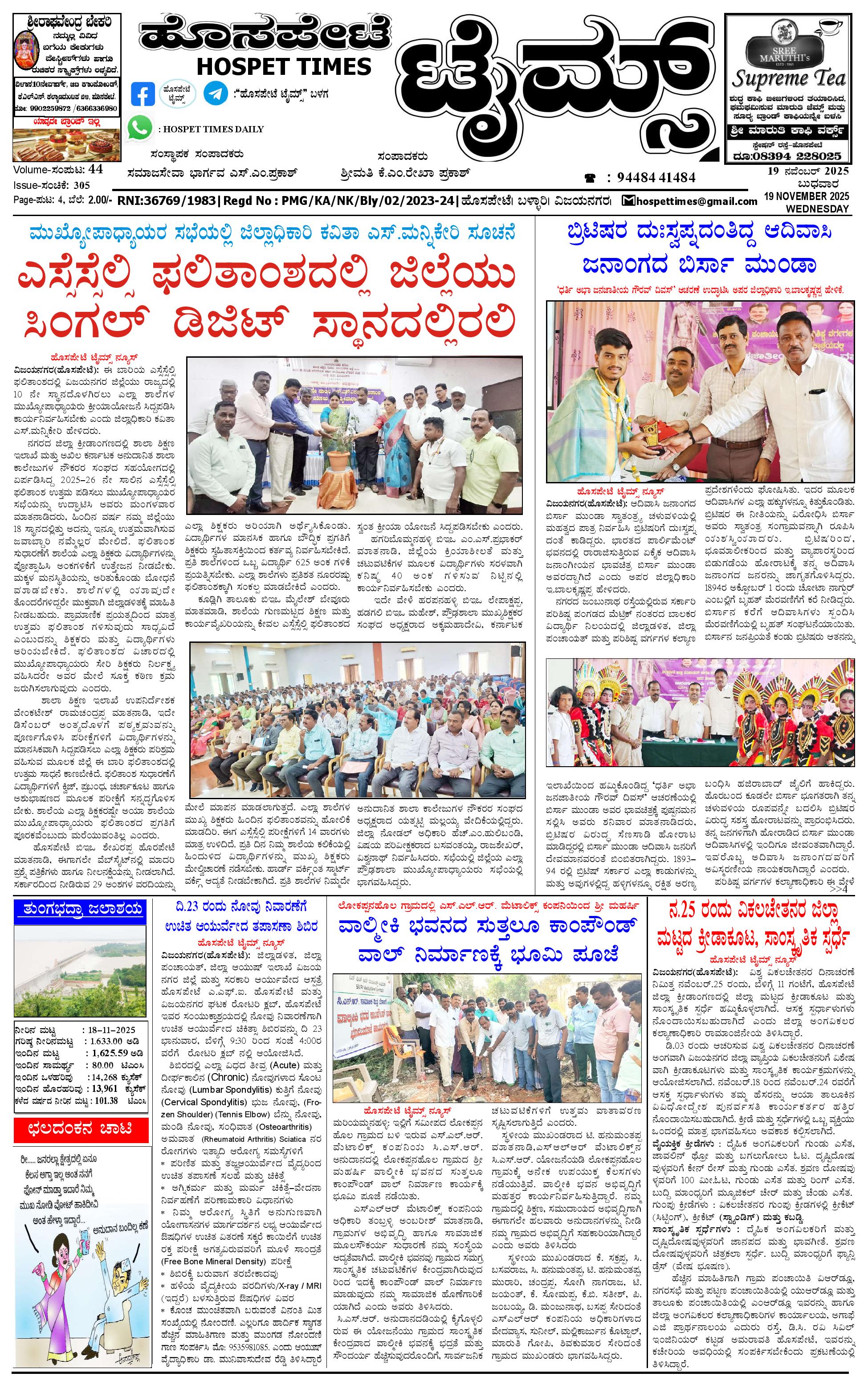 ಮಾಧ್ಯಮ ಅಕಾಡೆಮಿ ಪ್ರಶಸ್ತಿ ಪುರಸ್ಕೃತ 'ಹೊಸಪೇಟೆ ಟೈಮ್ಸ್' November 19, 2025 << First << 1 >> Last >> Page 1Page 2Page 3Page 4 × ಮಾಧ್ಯಮ ಅಕಾಡೆಮಿ ಪ್ರಶಸ್ತಿ ಪುರಸ್ಕೃತ 'ಹೊಸಪೇಟೆ ಟೈಮ್ಸ್' HPT-19112025--4-page-001HPT-19112025--4-page-002HPT-19112025--4-page-003HPT-19112025--4-page-004 << First << 1 >> Last >> HPT-19112025--4-page-001HPT-19112025--4-page-002HPT-19112025--4-page-003HPT-19112025--4-page-004 HPT-19112025--4-page-001