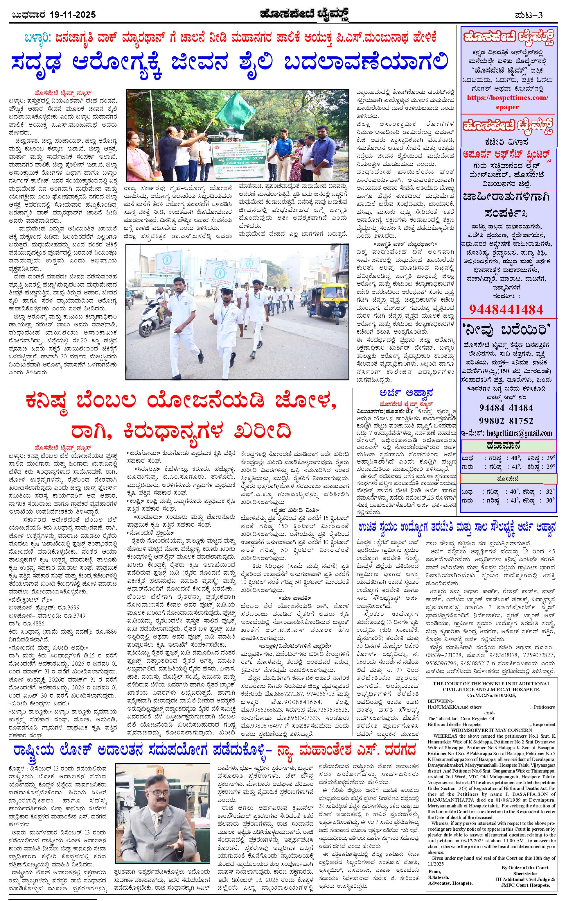 ಮಾಧ್ಯಮ ಅಕಾಡೆಮಿ ಪ್ರಶಸ್ತಿ ಪುರಸ್ಕೃತ 'ಹೊಸಪೇಟೆ ಟೈಮ್ಸ್' Page: 3 November 19, 2025 << First << 3 >> Last >> Page 1Page 2Page 3Page 4 × ಮಾಧ್ಯಮ ಅಕಾಡೆಮಿ ಪ್ರಶಸ್ತಿ ಪುರಸ್ಕೃತ 'ಹೊಸಪೇಟೆ ಟೈಮ್ಸ್' HPT-19112025--4-page-001HPT-19112025--4-page-002HPT-19112025--4-page-003HPT-19112025--4-page-004 << First << 3 >> Last >> HPT-19112025--4-page-001HPT-19112025--4-page-002HPT-19112025--4-page-003HPT-19112025--4-page-004 HPT-19112025--4-page-003