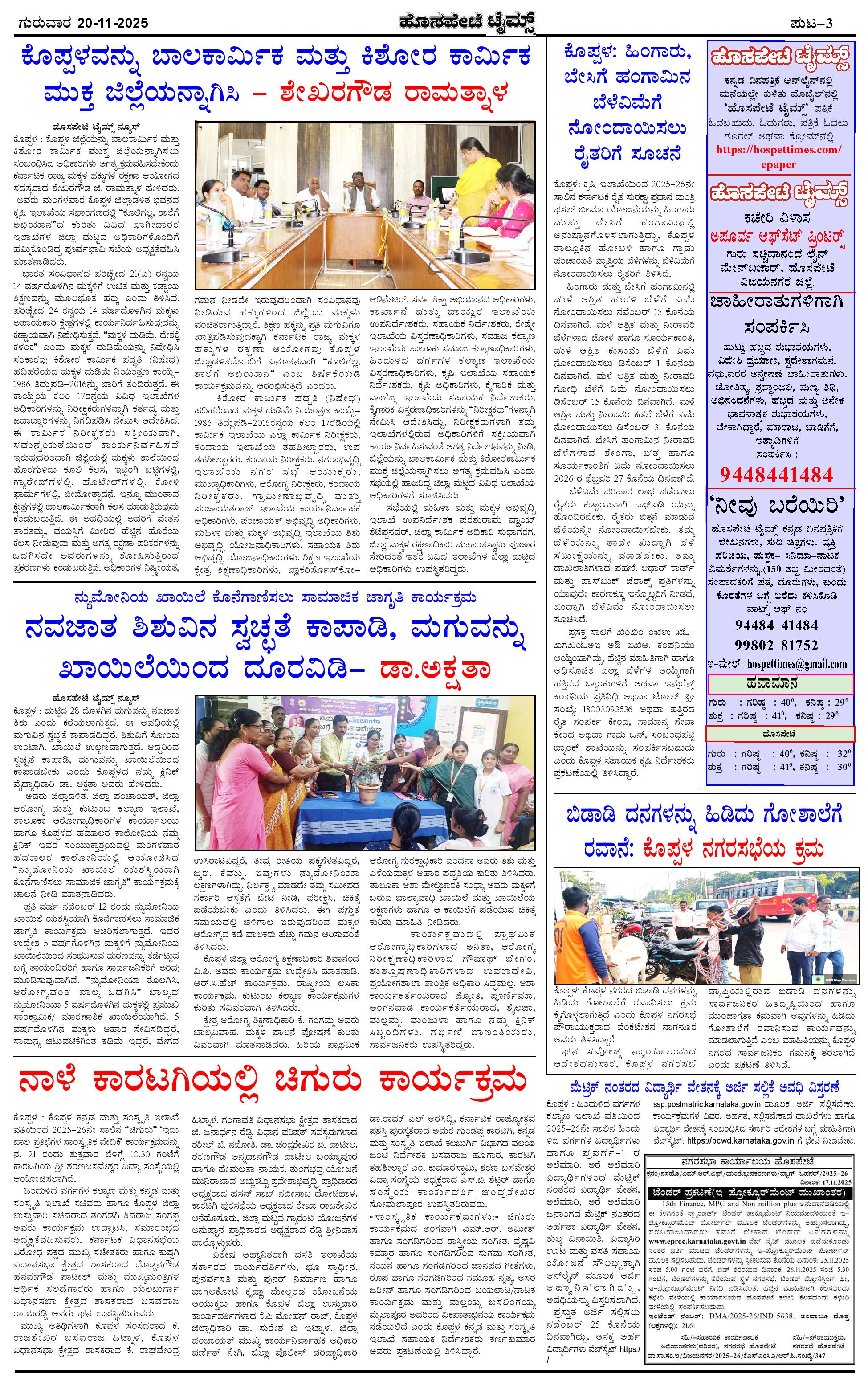 ಮಾಧ್ಯಮ ಅಕಾಡೆಮಿ ಪ್ರಶಸ್ತಿ ಪುರಸ್ಕೃತ 'ಹೊಸಪೇಟೆ ಟೈಮ್ಸ್' Page: 3 November 20, 2025 << First << 3 >> Last >> Page 1Page 2Page 3Page 4 × ಮಾಧ್ಯಮ ಅಕಾಡೆಮಿ ಪ್ರಶಸ್ತಿ ಪುರಸ್ಕೃತ 'ಹೊಸಪೇಟೆ ಟೈಮ್ಸ್' HPT-20112025-4-page-001HPT-20112025-4-page-002HPT-20112025-4-page-003HPT-20112025-4-page-004 << First << 3 >> Last >> HPT-20112025-4-page-001HPT-20112025-4-page-002HPT-20112025-4-page-003HPT-20112025-4-page-004 HPT-20112025-4-page-003