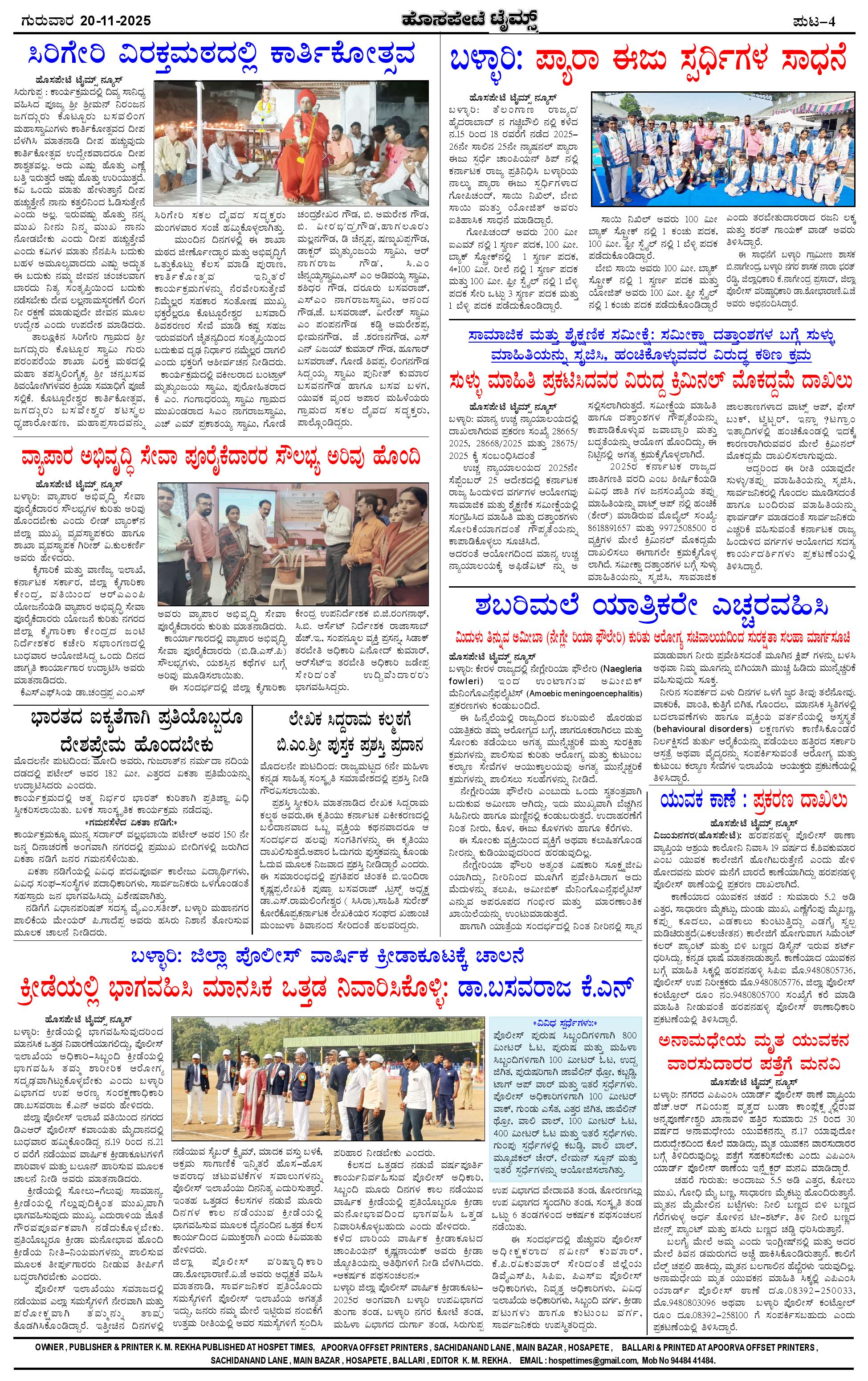 ಮಾಧ್ಯಮ ಅಕಾಡೆಮಿ ಪ್ರಶಸ್ತಿ ಪುರಸ್ಕೃತ 'ಹೊಸಪೇಟೆ ಟೈಮ್ಸ್' Page: 4 November 20, 2025 << First << 4 >> Last >> Page 1Page 2Page 3Page 4 × ಮಾಧ್ಯಮ ಅಕಾಡೆಮಿ ಪ್ರಶಸ್ತಿ ಪುರಸ್ಕೃತ 'ಹೊಸಪೇಟೆ ಟೈಮ್ಸ್' HPT-20112025-4-page-001HPT-20112025-4-page-002HPT-20112025-4-page-003HPT-20112025-4-page-004 << First << 4 >> Last >> HPT-20112025-4-page-001HPT-20112025-4-page-002HPT-20112025-4-page-003HPT-20112025-4-page-004 HPT-20112025-4-page-004