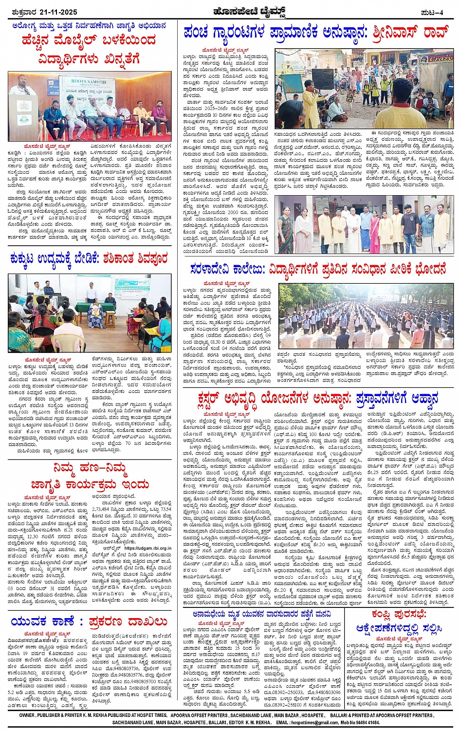 ಮಾಧ್ಯಮ ಅಕಾಡೆಮಿ ಪ್ರಶಸ್ತಿ ಪುರಸ್ಕೃತ 'ಹೊಸಪೇಟೆ ಟೈಮ್ಸ್' Page: 4 November 21, 2025 << First << 4 >> Last >> Page 1Page 2Page 3Page 4 × ಮಾಧ್ಯಮ ಅಕಾಡೆಮಿ ಪ್ರಶಸ್ತಿ ಪುರಸ್ಕೃತ 'ಹೊಸಪೇಟೆ ಟೈಮ್ಸ್' HPT-21112025--4-page-001HPT-21112025--4-page-002HPT-21112025--4-page-003HPT-21112025--4-page-004 << First << 4 >> Last >> HPT-21112025--4-page-001HPT-21112025--4-page-002HPT-21112025--4-page-003HPT-21112025--4-page-004 HPT-21112025--4-page-004