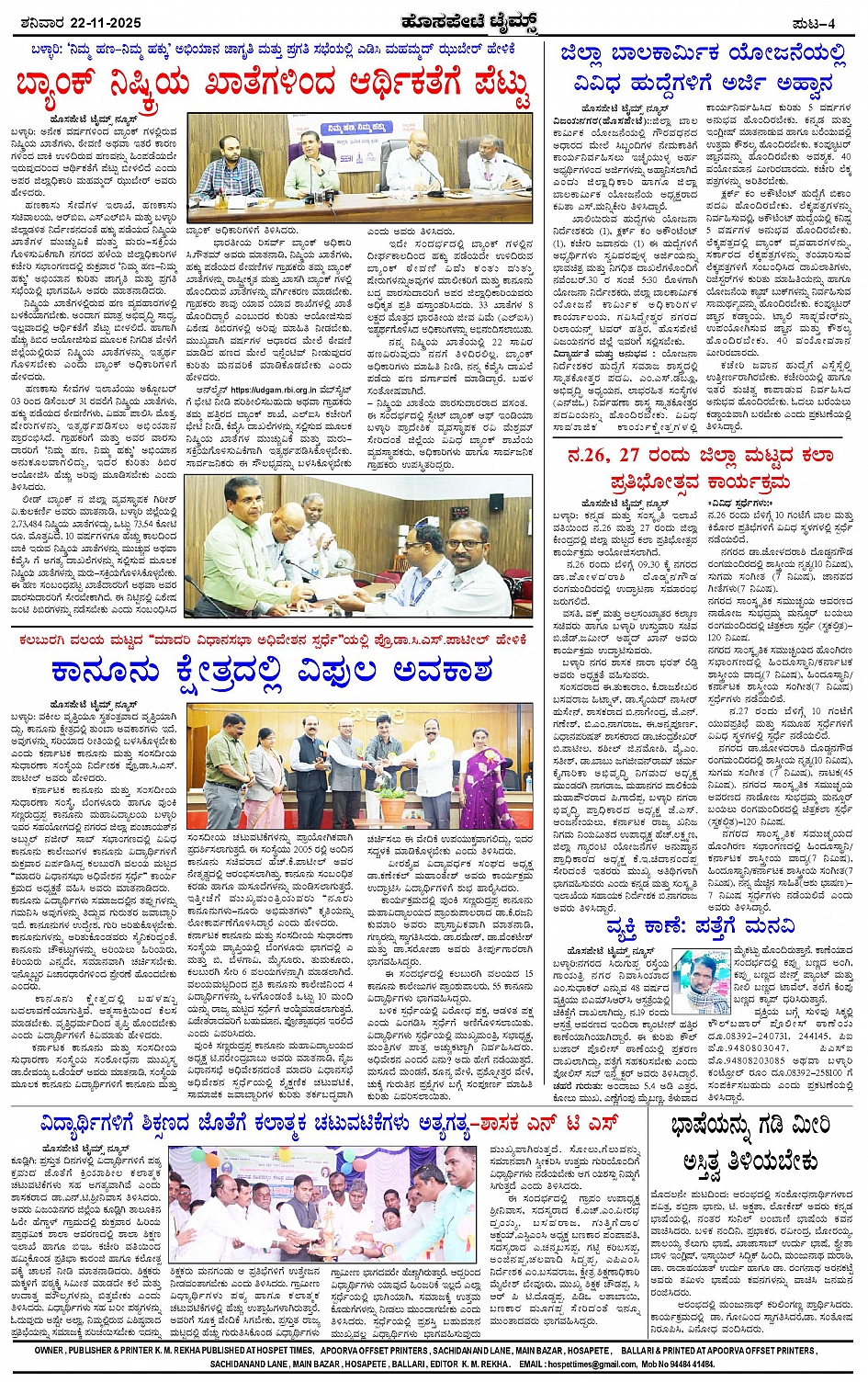 ಮಾಧ್ಯಮ ಅಕಾಡೆಮಿ ಪ್ರಶಸ್ತಿ ಪುರಸ್ಕೃತ 'ಹೊಸಪೇಟೆ ಟೈಮ್ಸ್' Page: 4 November 22, 2025 << First << 4 >> Last >> Page 1Page 2Page 3Page 4 × ಮಾಧ್ಯಮ ಅಕಾಡೆಮಿ ಪ್ರಶಸ್ತಿ ಪುರಸ್ಕೃತ 'ಹೊಸಪೇಟೆ ಟೈಮ್ಸ್' HPT-22112025--4-page-001HPT-22112025--4-page-002HPT-22112025--4-page-003HPT-22112025--4-page-004 << First << 4 >> Last >> HPT-22112025--4-page-001HPT-22112025--4-page-002HPT-22112025--4-page-003HPT-22112025--4-page-004 HPT-22112025--4-page-004