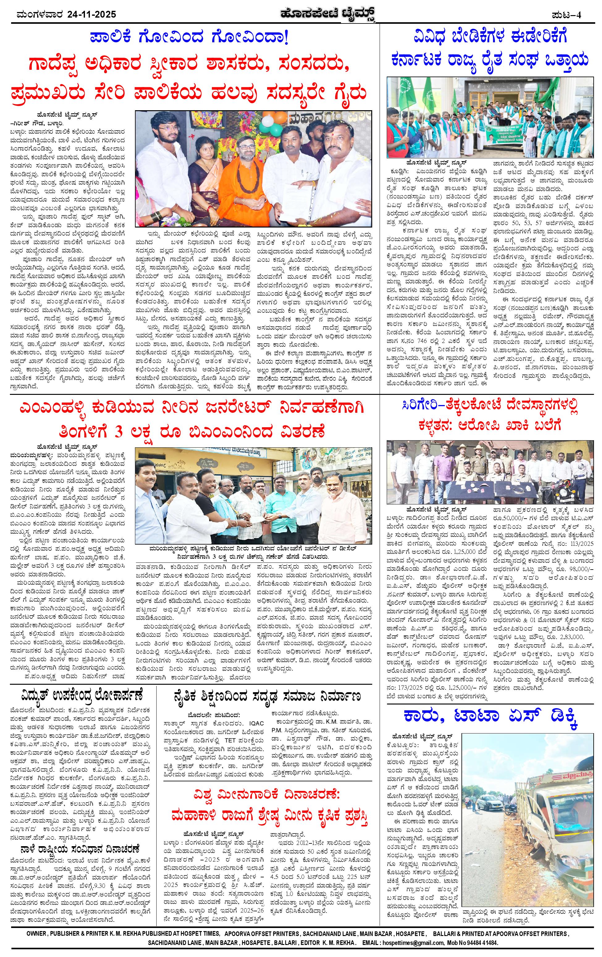 ಮಾಧ್ಯಮ ಅಕಾಡೆಮಿ ಪ್ರಶಸ್ತಿ ಪುರಸ್ಕೃತ 'ಹೊಸಪೇಟೆ ಟೈಮ್ಸ್' Page: 4 November 25, 2025 << First << 4 >> Last >> Page 1Page 2Page 3Page 4 × ಮಾಧ್ಯಮ ಅಕಾಡೆಮಿ ಪ್ರಶಸ್ತಿ ಪುರಸ್ಕೃತ 'ಹೊಸಪೇಟೆ ಟೈಮ್ಸ್' HPT-25112025-4-page-001HPT-25112025-4-page-002HPT-25112025-4-page-003HPT-25112025-4-page-004 << First << 4 >> Last >> HPT-25112025-4-page-001HPT-25112025-4-page-002HPT-25112025-4-page-003HPT-25112025-4-page-004 HPT-25112025-4-page-004