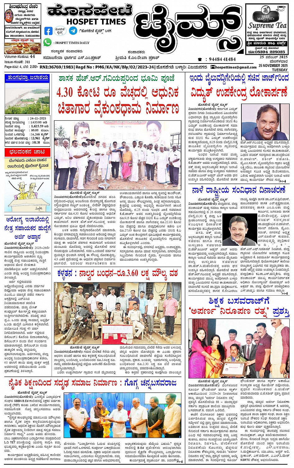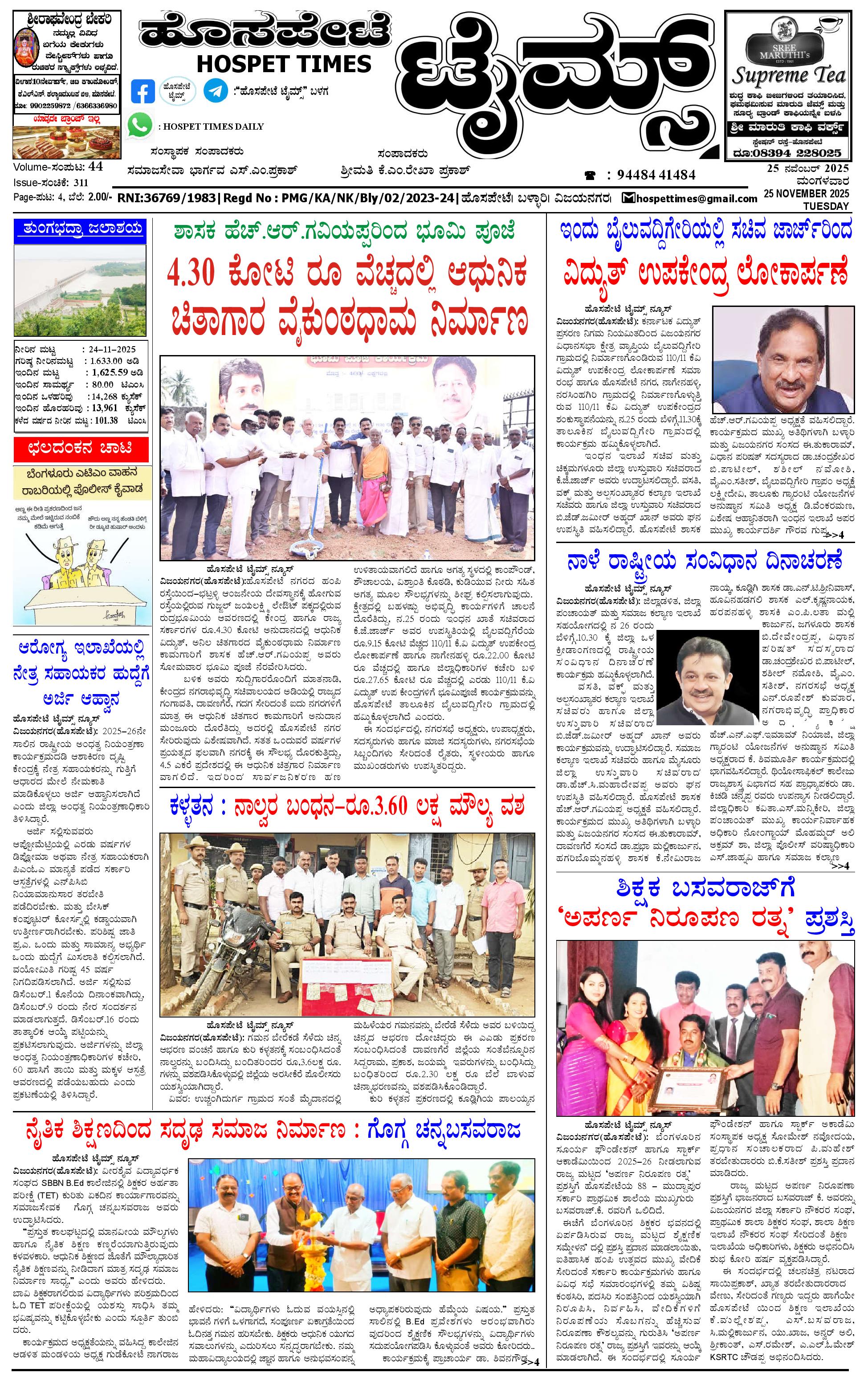 ಮಾಧ್ಯಮ ಅಕಾಡೆಮಿ ಪ್ರಶಸ್ತಿ ಪುರಸ್ಕೃತ 'ಹೊಸಪೇಟೆ ಟೈಮ್ಸ್'