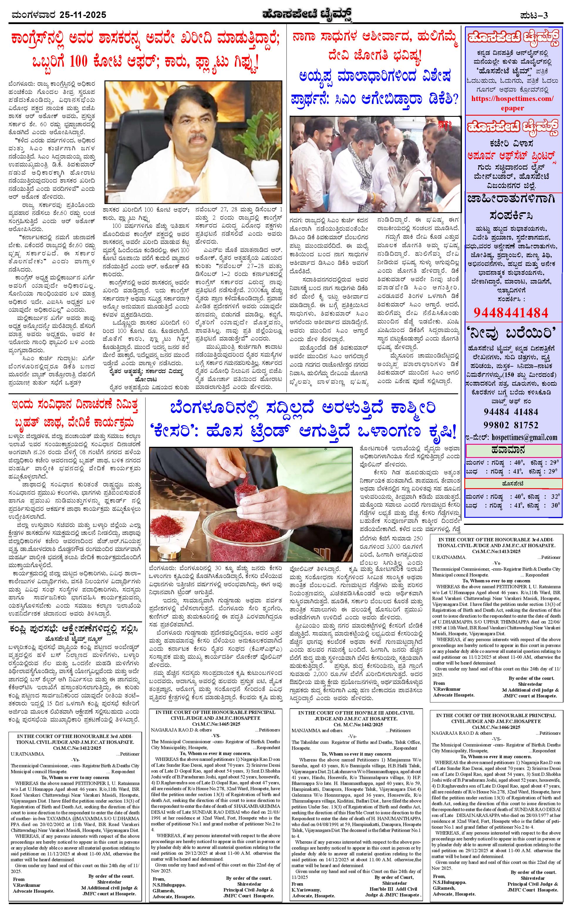 ಮಾಧ್ಯಮ ಅಕಾಡೆಮಿ ಪ್ರಶಸ್ತಿ ಪುರಸ್ಕೃತ 'ಹೊಸಪೇಟೆ ಟೈಮ್ಸ್' Page: 3 November 25, 2025 << First << 3 >> Last >> Page 1Page 2Page 3Page 4 × ಮಾಧ್ಯಮ ಅಕಾಡೆಮಿ ಪ್ರಶಸ್ತಿ ಪುರಸ್ಕೃತ 'ಹೊಸಪೇಟೆ ಟೈಮ್ಸ್' HPT-25112025-4 PAGE-page-001HPT-25112025-4 PAGE-page-002HPT-25112025-4 PAGE-page-003HPT-25112025-4 PAGE-page-004 << First << 3 >> Last >> HPT-25112025-4 PAGE-page-001HPT-25112025-4 PAGE-page-002HPT-25112025-4 PAGE-page-003HPT-25112025-4 PAGE-page-004 HPT-25112025-4 PAGE-page-003