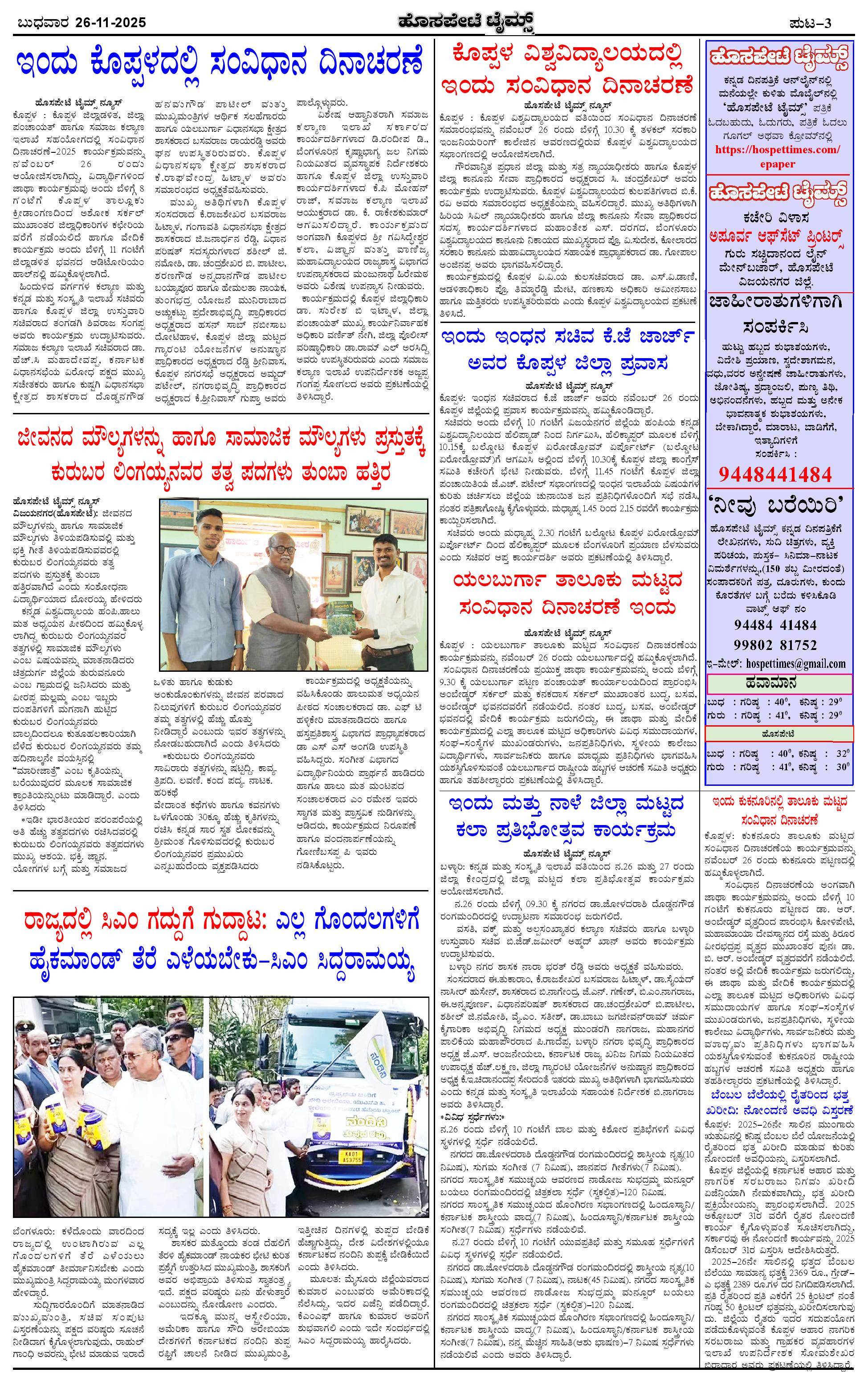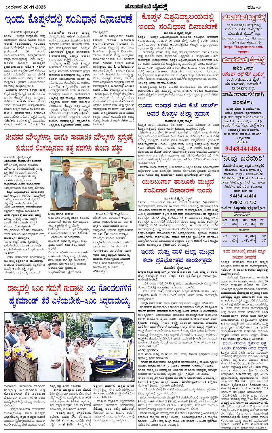 ಮಾಧ್ಯಮ ಅಕಾಡೆಮಿ ಪ್ರಶಸ್ತಿ ಪುರಸ್ಕೃತ 'ಹೊಸಪೇಟೆ ಟೈಮ್ಸ್' Page: 3 November 26, 2025 << First << 3 >> Last >> Page 1Page 2Page 3Page 4 × ಮಾಧ್ಯಮ ಅಕಾಡೆಮಿ ಪ್ರಶಸ್ತಿ ಪುರಸ್ಕೃತ 'ಹೊಸಪೇಟೆ ಟೈಮ್ಸ್' HPT-26112025--4-page-001HPT-26112025--4-page-002HPT-26112025--4-page-003HPT-26112025--4-page-004 << First << 3 >> Last >> HPT-26112025--4-page-001HPT-26112025--4-page-002HPT-26112025--4-page-003HPT-26112025--4-page-004 HPT-26112025--4-page-003