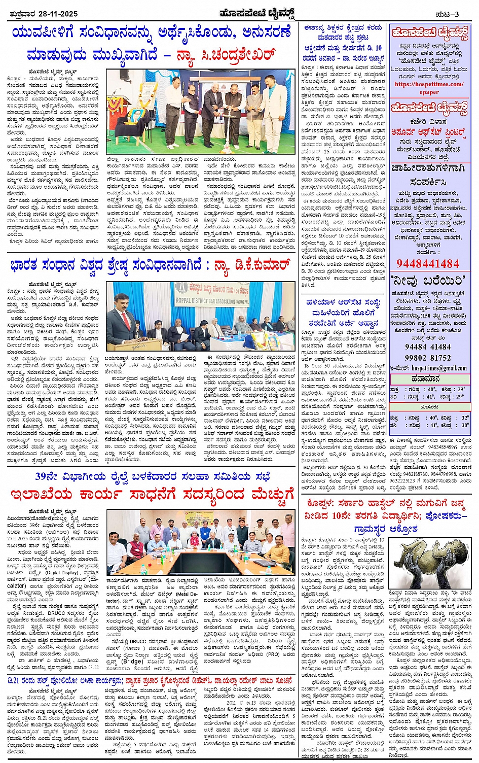 ಮಾಧ್ಯಮ ಅಕಾಡೆಮಿ ಪ್ರಶಸ್ತಿ ಪುರಸ್ಕೃತ 'ಹೊಸಪೇಟೆ ಟೈಮ್ಸ್' Page: 3 November 28, 2025 << First << 3 >> Last >> Page 1Page 2Page 3Page 4 × ಮಾಧ್ಯಮ ಅಕಾಡೆಮಿ ಪ್ರಶಸ್ತಿ ಪುರಸ್ಕೃತ 'ಹೊಸಪೇಟೆ ಟೈಮ್ಸ್' HPT-28112025--4-page-001HPT-28112025--4-page-002HPT-28112025--4-page-003HPT-28112025--4-page-004 << First << 3 >> Last >> HPT-28112025--4-page-001HPT-28112025--4-page-002HPT-28112025--4-page-003HPT-28112025--4-page-004 HPT-28112025--4-page-003
