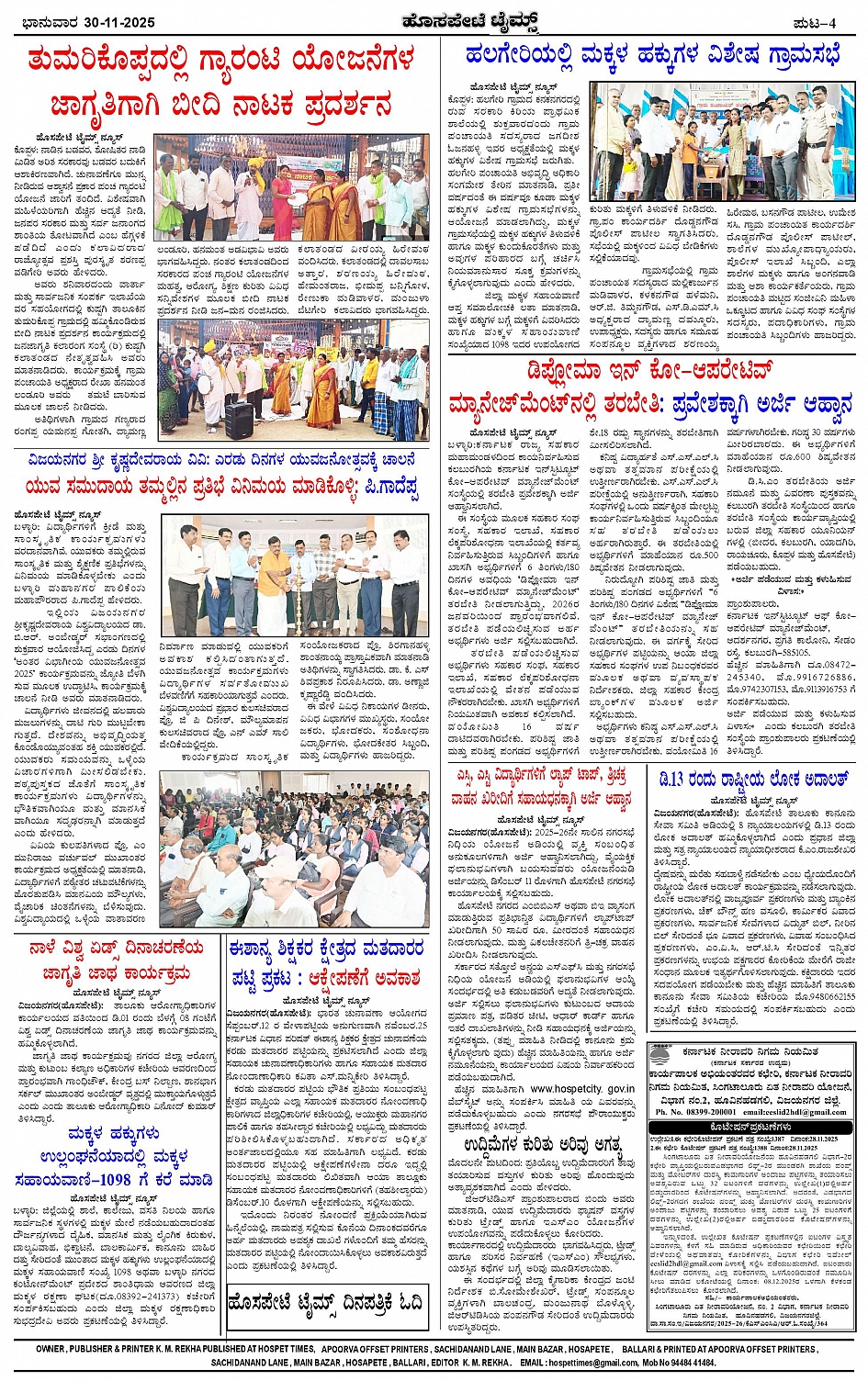 ಮಾಧ್ಯಮ ಅಕಾಡೆಮಿ ಪ್ರಶಸ್ತಿ ಪುರಸ್ಕೃತ 'ಹೊಸಪೇಟೆ ಟೈಮ್ಸ್' Page: 4 November 30, 2025 << First << 4 >> Last >> Page 1Page 2Page 3Page 4 × ಮಾಧ್ಯಮ ಅಕಾಡೆಮಿ ಪ್ರಶಸ್ತಿ ಪುರಸ್ಕೃತ 'ಹೊಸಪೇಟೆ ಟೈಮ್ಸ್' HPT-30112025--4-page-001HPT-30112025--4-page-002HPT-30112025--4-page-003HPT-30112025--4-page-004 << First << 4 >> Last >> HPT-30112025--4-page-001HPT-30112025--4-page-002HPT-30112025--4-page-003HPT-30112025--4-page-004 HPT-30112025--4-page-004