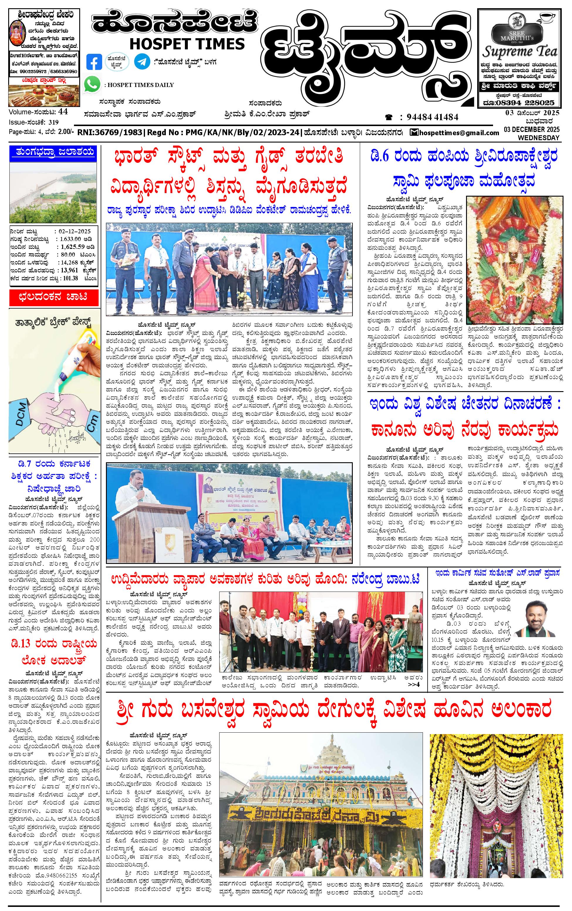 ಮಾಧ್ಯಮ ಅಕಾಡೆಮಿ ಪ್ರಶಸ್ತಿ ಪುರಸ್ಕೃತ 'ಹೊಸಪೇಟೆ ಟೈಮ್ಸ್' December 03, 2025 << First << 1 >> Last >> Page 1Page 2Page 3Page 4 × ಮಾಧ್ಯಮ ಅಕಾಡೆಮಿ ಪ್ರಶಸ್ತಿ ಪುರಸ್ಕೃತ 'ಹೊಸಪೇಟೆ ಟೈಮ್ಸ್' HPT-03122025--4-page-001HPT-03122025--4-page-002HPT-03122025--4-page-003HPT-03122025--4-page-004 << First << 1 >> Last >> HPT-03122025--4-page-001HPT-03122025--4-page-002HPT-03122025--4-page-003HPT-03122025--4-page-004 HPT-03122025--4-page-001
