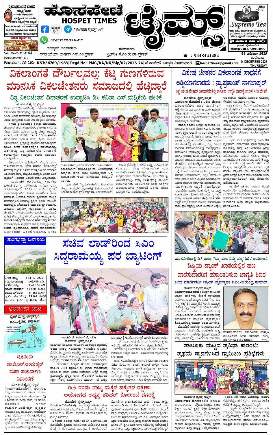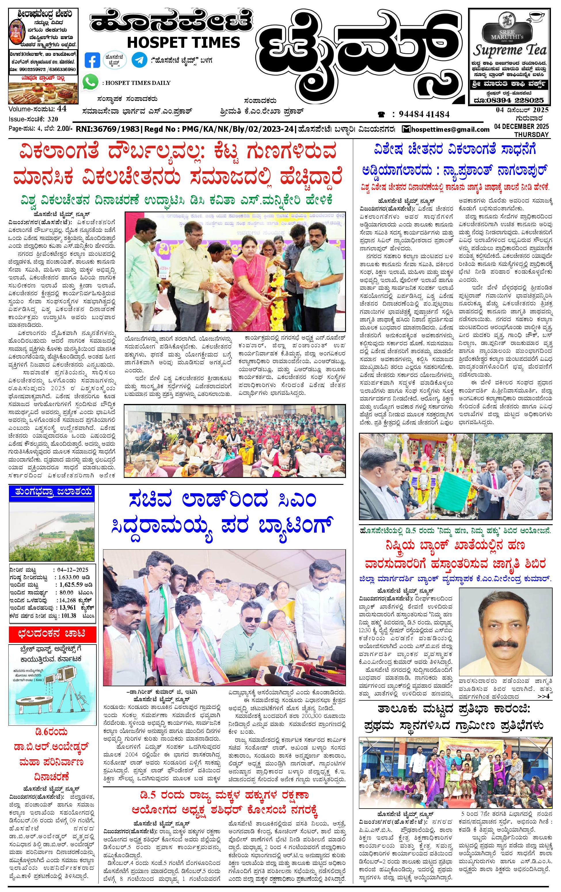 ಮಾಧ್ಯಮ ಅಕಾಡೆಮಿ ಪ್ರಶಸ್ತಿ ಪುರಸ್ಕೃತ 'ಹೊಸಪೇಟೆ ಟೈಮ್ಸ್' December 04, 2025 << First << 1 >> Last >> Page 1Page 2Page 3Page 4 × ಮಾಧ್ಯಮ ಅಕಾಡೆಮಿ ಪ್ರಶಸ್ತಿ ಪುರಸ್ಕೃತ 'ಹೊಸಪೇಟೆ ಟೈಮ್ಸ್' HPT-04122025-4-page-001HPT-04122025-4-page-002HPT-04122025-4-page-003HPT-04122025-4-page-004 << First << 1 >> Last >> HPT-04122025-4-page-001HPT-04122025-4-page-002HPT-04122025-4-page-003HPT-04122025-4-page-004 HPT-04122025-4-page-001