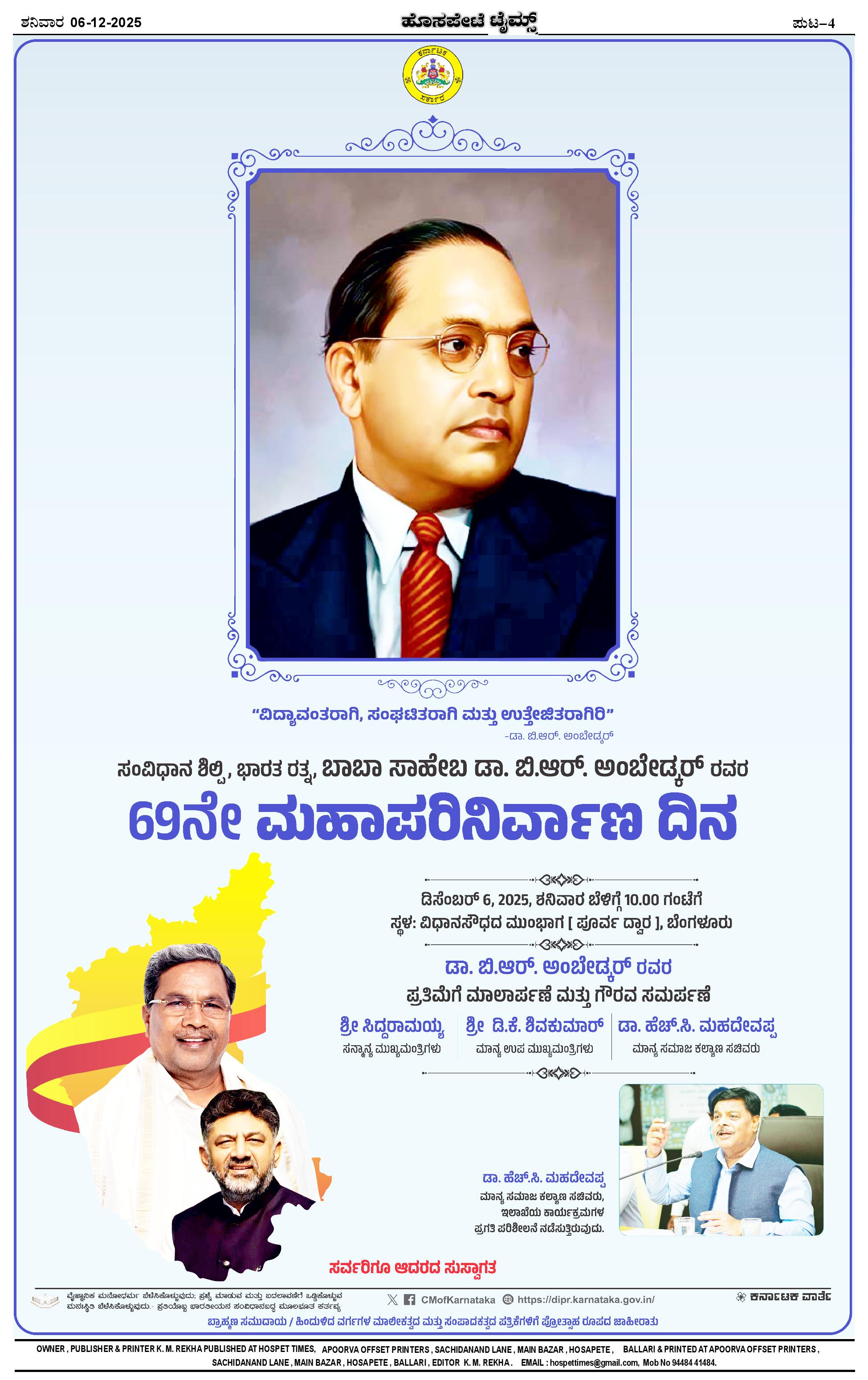 ಮಾಧ್ಯಮ ಅಕಾಡೆಮಿ ಪ್ರಶಸ್ತಿ ಪುರಸ್ಕೃತ 'ಹೊಸಪೇಟೆ ಟೈಮ್ಸ್' Page: 4 December 06, 2025 << First << 4 >> Last >> Page 1Page 2Page 3Page 4 × ಮಾಧ್ಯಮ ಅಕಾಡೆಮಿ ಪ್ರಶಸ್ತಿ ಪುರಸ್ಕೃತ 'ಹೊಸಪೇಟೆ ಟೈಮ್ಸ್' HPT-06122025--4-page-001HPT-06122025--4-page-002HPT-06122025--4-page-003HPT-06122025--4-page-004 << First << 4 >> Last >> HPT-06122025--4-page-001HPT-06122025--4-page-002HPT-06122025--4-page-003HPT-06122025--4-page-004 HPT-06122025--4-page-004