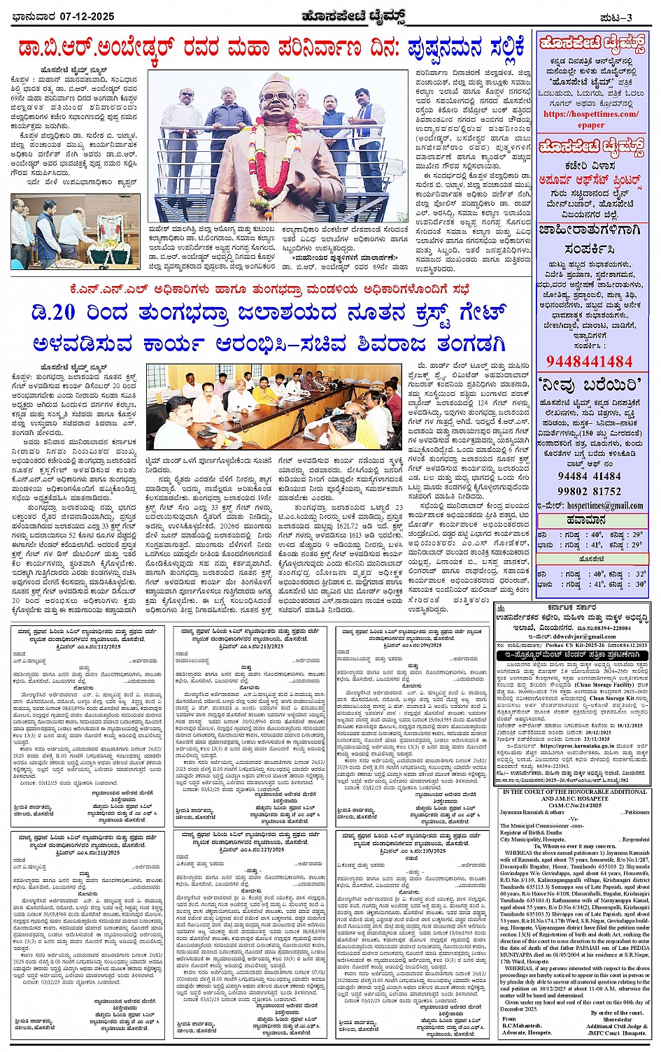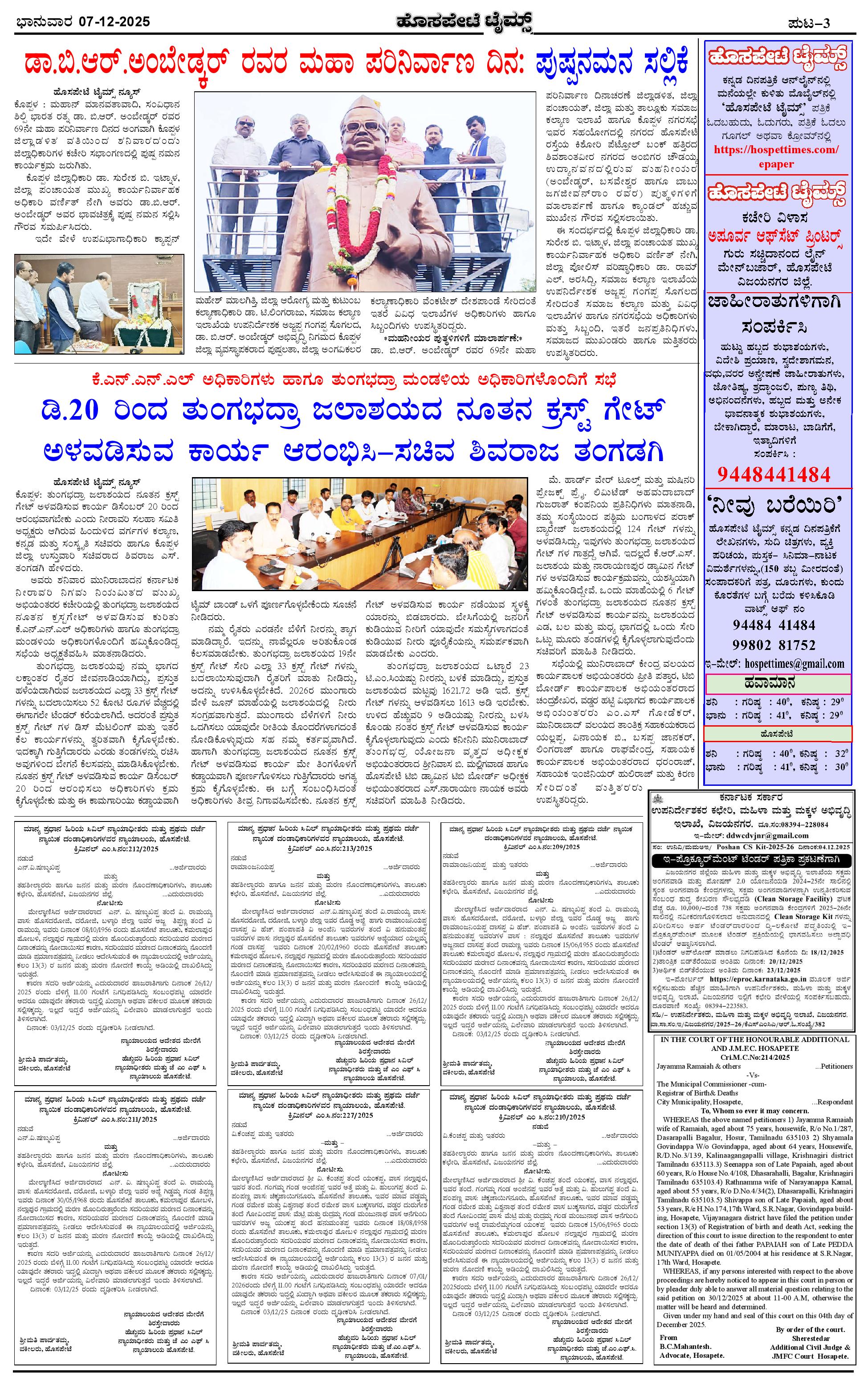 ಮಾಧ್ಯಮ ಅಕಾಡೆಮಿ ಪ್ರಶಸ್ತಿ ಪುರಸ್ಕೃತ 'ಹೊಸಪೇಟೆ ಟೈಮ್ಸ್' Page: 3 December 07, 2025 << First << 3 >> Last >> Page 1Page 2Page 3Page 4 × ಮಾಧ್ಯಮ ಅಕಾಡೆಮಿ ಪ್ರಶಸ್ತಿ ಪುರಸ್ಕೃತ 'ಹೊಸಪೇಟೆ ಟೈಮ್ಸ್' HPT-07122025--4-page-001HPT-07122025--4-page-002HPT-07122025--4-page-003HPT-07122025--4-page-004 << First << 3 >> Last >> HPT-07122025--4-page-001HPT-07122025--4-page-002HPT-07122025--4-page-003HPT-07122025--4-page-004 HPT-07122025--4-page-003
