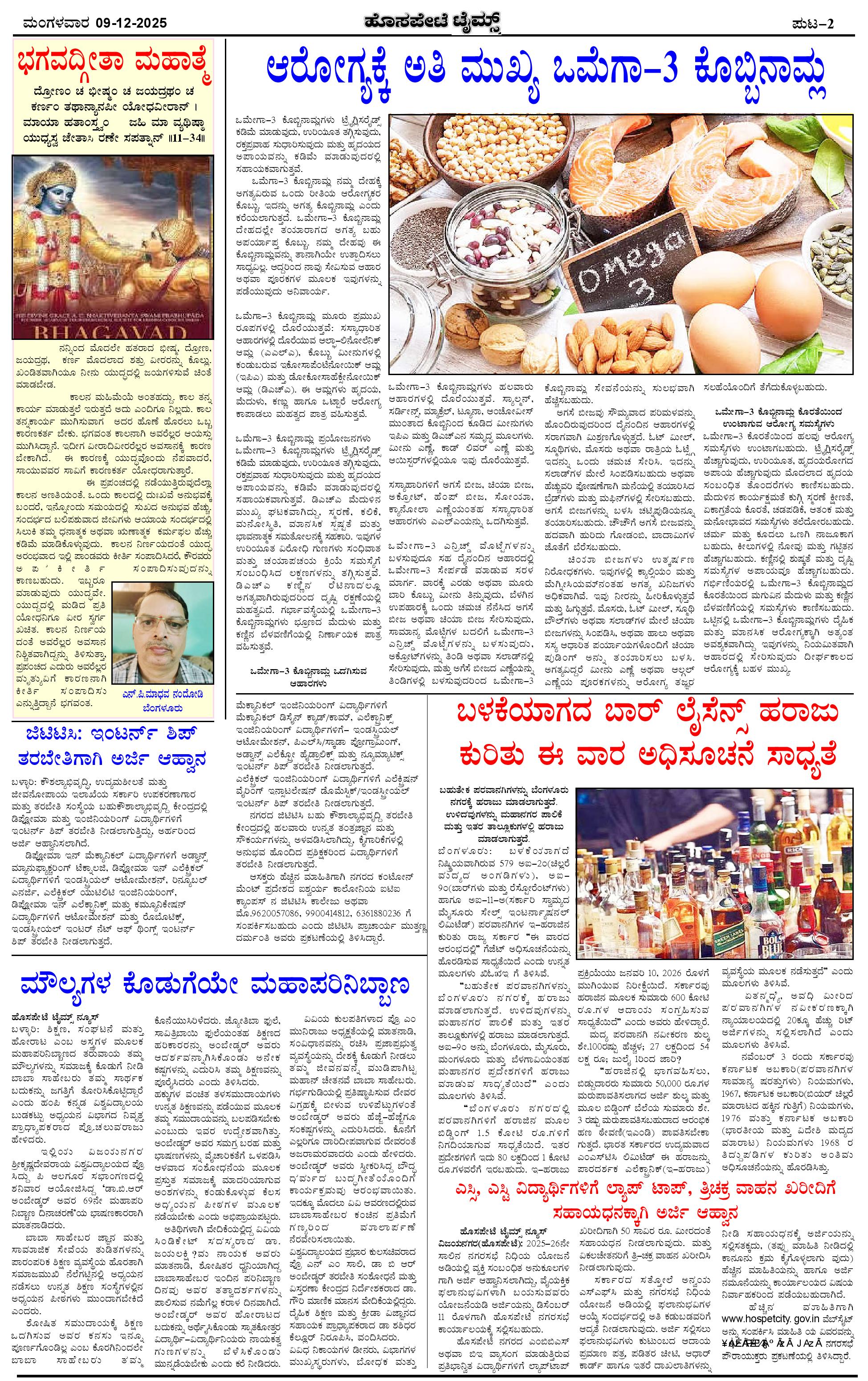 ಮಾಧ್ಯಮ ಅಕಾಡೆಮಿ ಪ್ರಶಸ್ತಿ ಪುರಸ್ಕೃತ 'ಹೊಸಪೇಟೆ ಟೈಮ್ಸ್' Page: 2 December 09, 2025 << First << 2 >> Last >> Page 1Page 2Page 3Page 4 × ಮಾಧ್ಯಮ ಅಕಾಡೆಮಿ ಪ್ರಶಸ್ತಿ ಪುರಸ್ಕೃತ 'ಹೊಸಪೇಟೆ ಟೈಮ್ಸ್' HPT-09122025--4-page-001HPT-09122025--4-page-002HPT-09122025--4-page-003HPT-09122025--4-page-004 << First << 2 >> Last >> HPT-09122025--4-page-001HPT-09122025--4-page-002HPT-09122025--4-page-003HPT-09122025--4-page-004 HPT-09122025--4-page-002