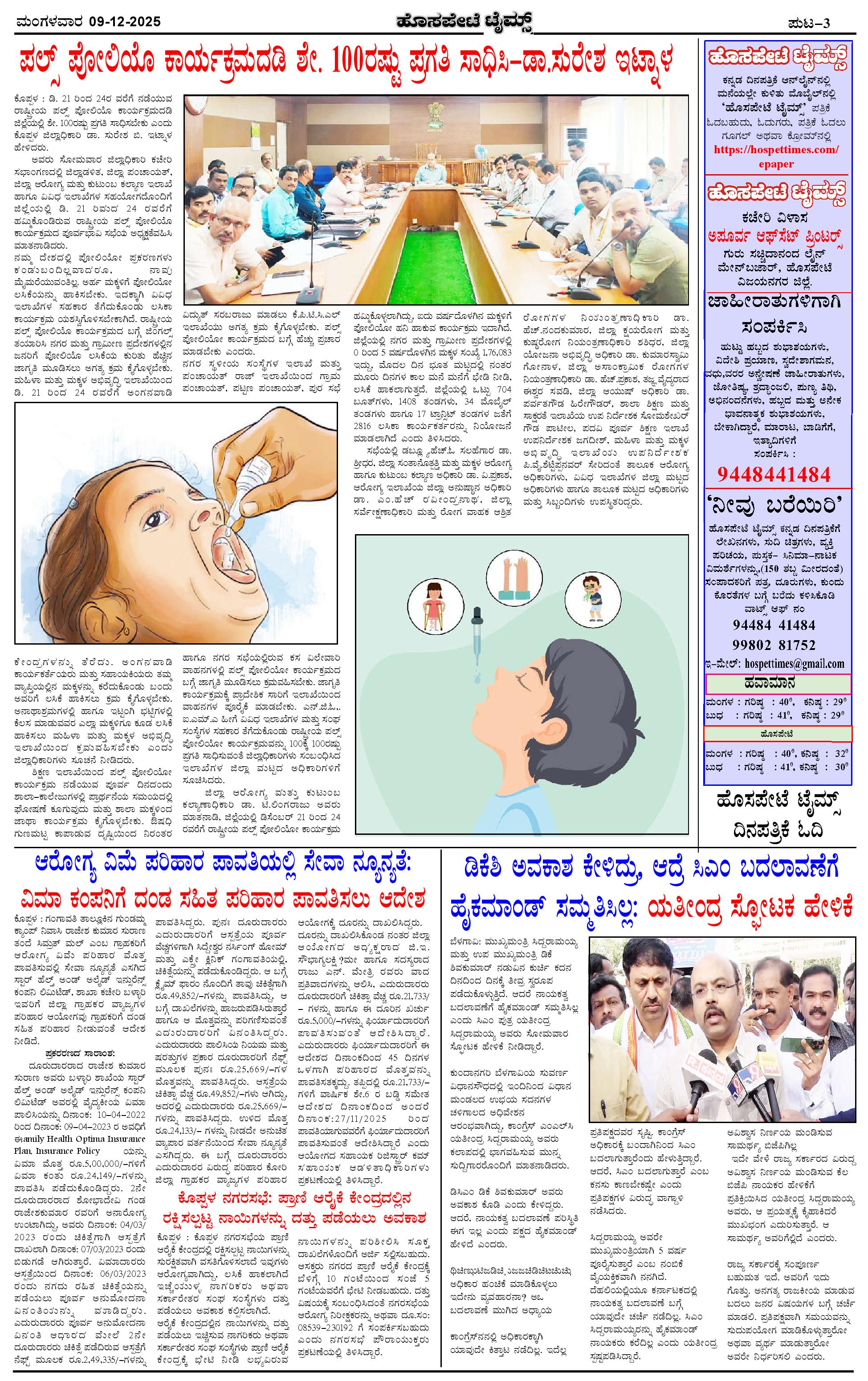 ಮಾಧ್ಯಮ ಅಕಾಡೆಮಿ ಪ್ರಶಸ್ತಿ ಪುರಸ್ಕೃತ 'ಹೊಸಪೇಟೆ ಟೈಮ್ಸ್' Page: 3 December 09, 2025 << First << 3 >> Last >> Page 1Page 2Page 3Page 4 × ಮಾಧ್ಯಮ ಅಕಾಡೆಮಿ ಪ್ರಶಸ್ತಿ ಪುರಸ್ಕೃತ 'ಹೊಸಪೇಟೆ ಟೈಮ್ಸ್' HPT-09122025--4-page-001HPT-09122025--4-page-002HPT-09122025--4-page-003HPT-09122025--4-page-004 << First << 3 >> Last >> HPT-09122025--4-page-001HPT-09122025--4-page-002HPT-09122025--4-page-003HPT-09122025--4-page-004 HPT-09122025--4-page-003