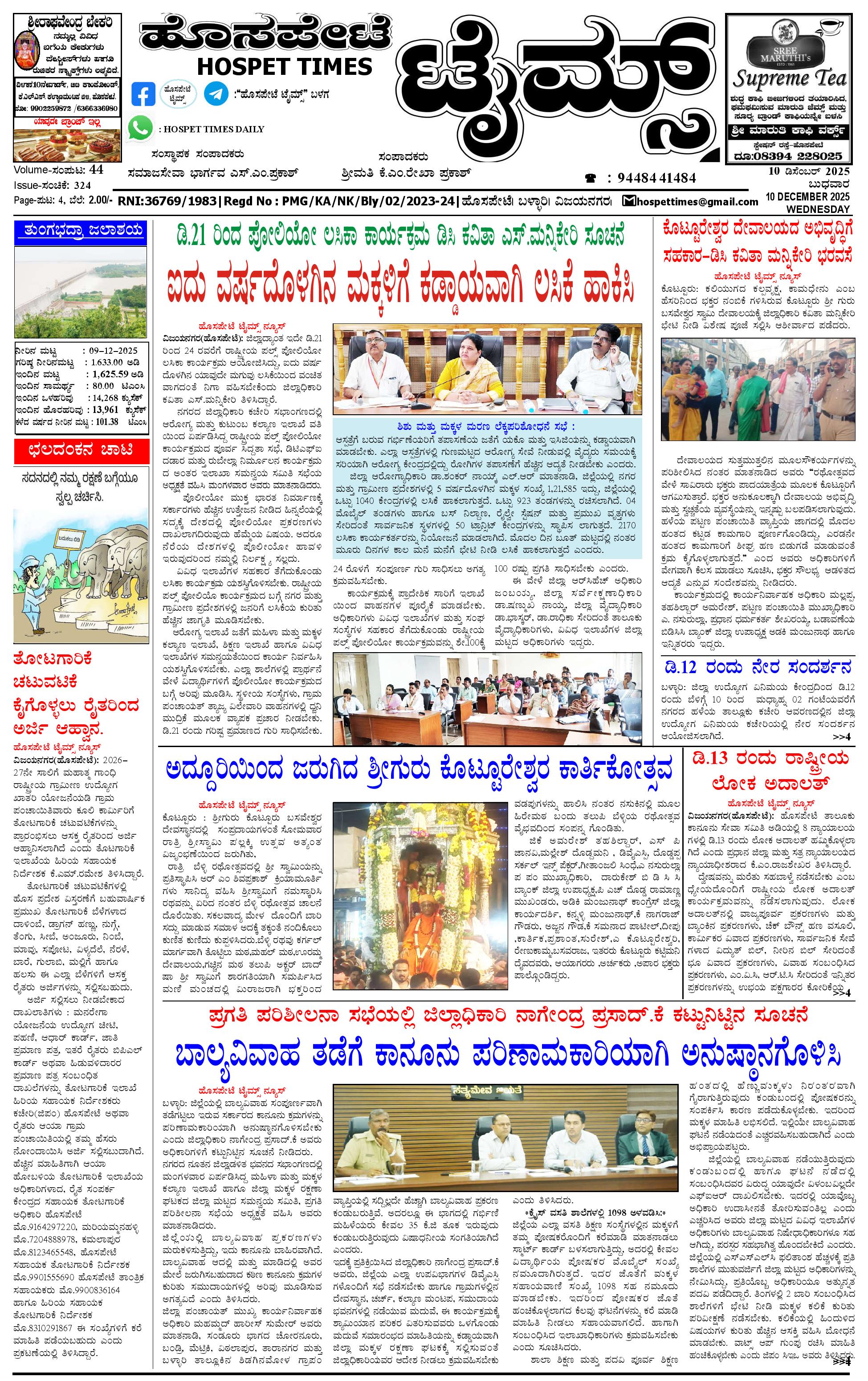 ಮಾಧ್ಯಮ ಅಕಾಡೆಮಿ ಪ್ರಶಸ್ತಿ ಪುರಸ್ಕೃತ 'ಹೊಸಪೇಟೆ ಟೈಮ್ಸ್' December 10, 2025 << First << 1 >> Last >> Page 1Page 2Page 3Page 4 × ಮಾಧ್ಯಮ ಅಕಾಡೆಮಿ ಪ್ರಶಸ್ತಿ ಪುರಸ್ಕೃತ 'ಹೊಸಪೇಟೆ ಟೈಮ್ಸ್' HPT-10122025-4-page-001HPT-10122025-4-page-002HPT-10122025-4-page-003HPT-10122025-4-page-004 << First << 1 >> Last >> HPT-10122025-4-page-001HPT-10122025-4-page-002HPT-10122025-4-page-003HPT-10122025-4-page-004 HPT-10122025-4-page-001