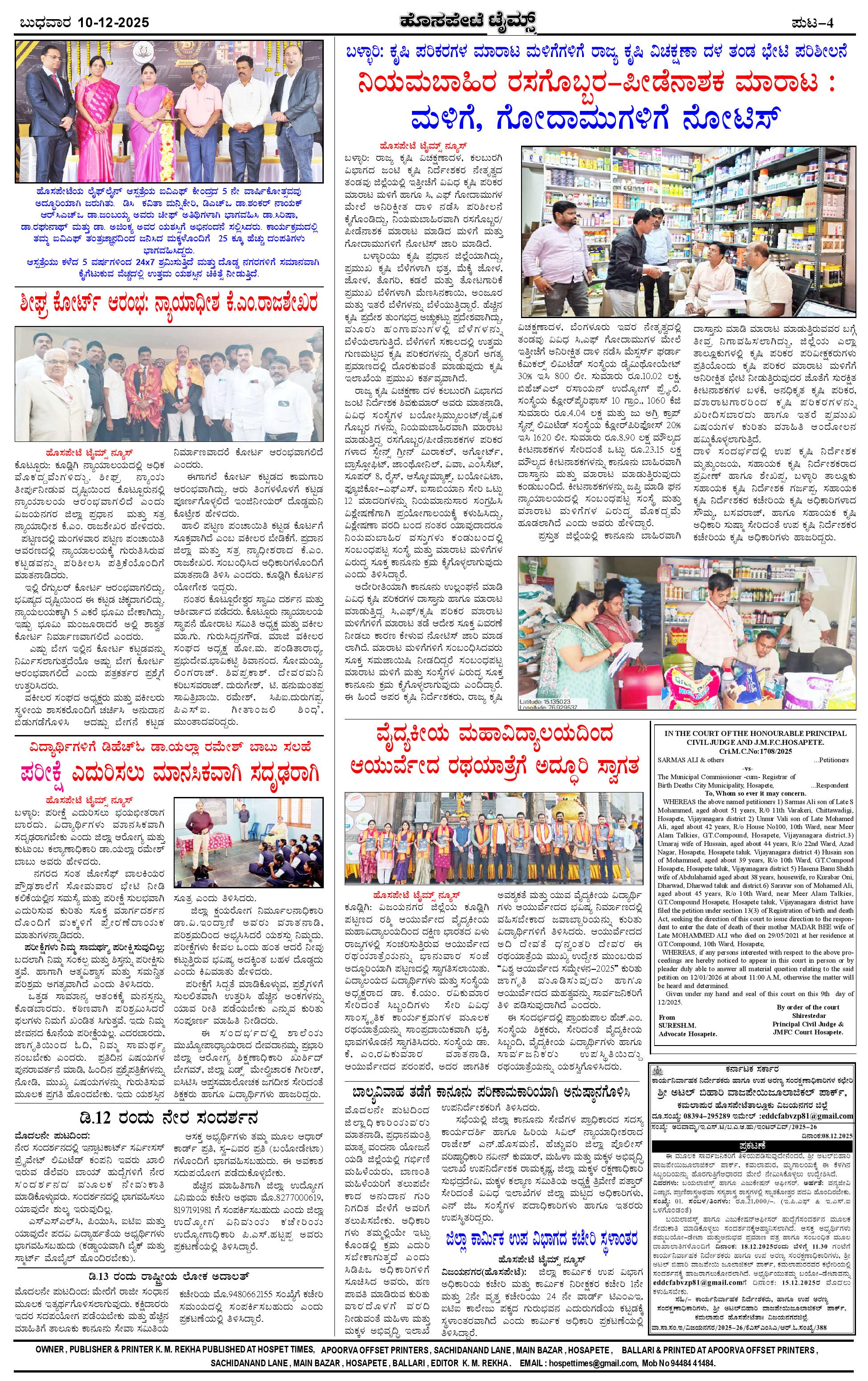 ಮಾಧ್ಯಮ ಅಕಾಡೆಮಿ ಪ್ರಶಸ್ತಿ ಪುರಸ್ಕೃತ 'ಹೊಸಪೇಟೆ ಟೈಮ್ಸ್' Page: 4 December 10, 2025 << First << 4 >> Last >> Page 1Page 2Page 3Page 4 × ಮಾಧ್ಯಮ ಅಕಾಡೆಮಿ ಪ್ರಶಸ್ತಿ ಪುರಸ್ಕೃತ 'ಹೊಸಪೇಟೆ ಟೈಮ್ಸ್' HPT-10122025-4-page-001HPT-10122025-4-page-002HPT-10122025-4-page-003HPT-10122025-4-page-004 << First << 4 >> Last >> HPT-10122025-4-page-001HPT-10122025-4-page-002HPT-10122025-4-page-003HPT-10122025-4-page-004 HPT-10122025-4-page-004