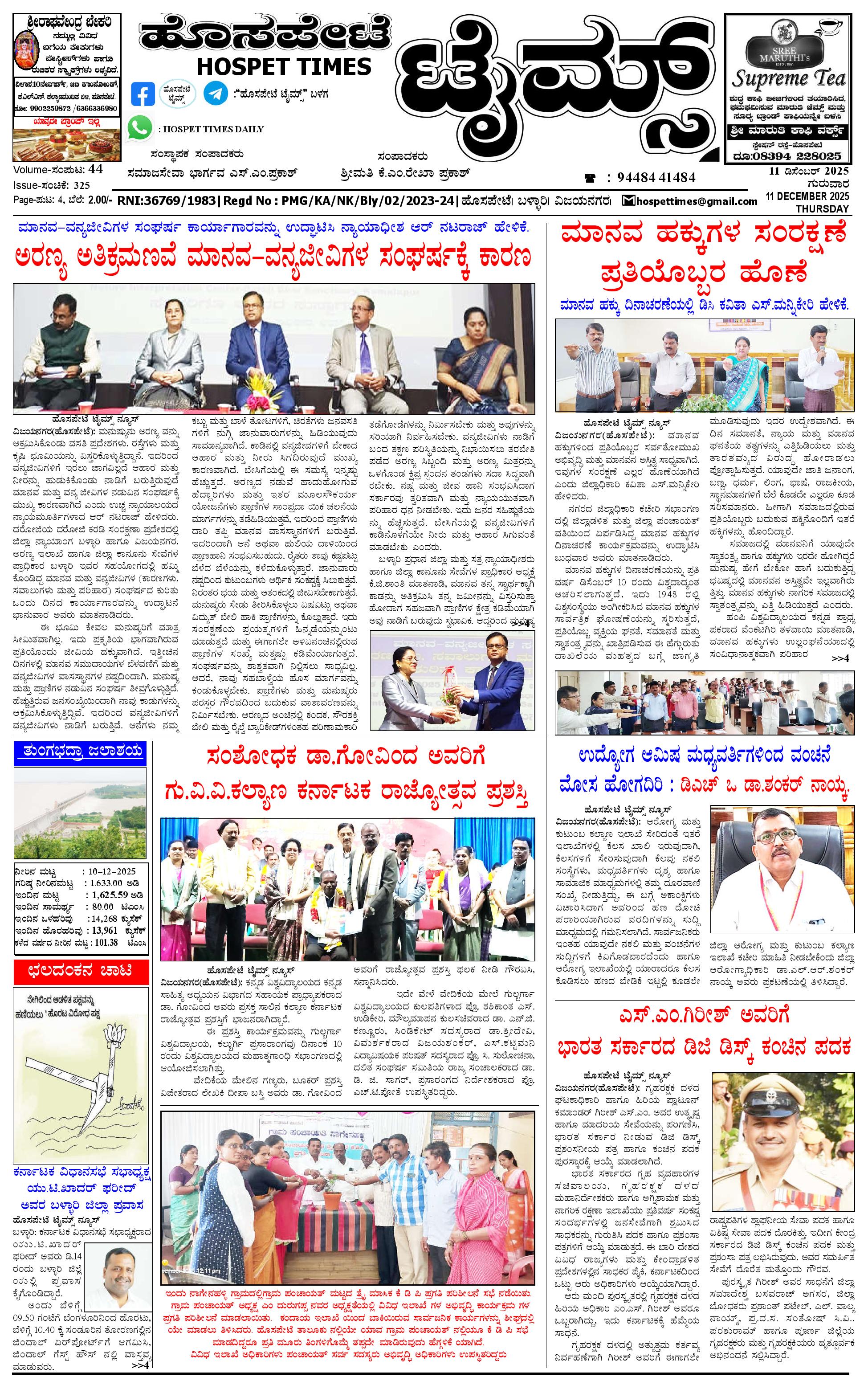 ಮಾಧ್ಯಮ ಅಕಾಡೆಮಿ ಪ್ರಶಸ್ತಿ ಪುರಸ್ಕೃತ 'ಹೊಸಪೇಟೆ ಟೈಮ್ಸ್' December 11, 2025 << First << 1 >> Last >> Page 1Page 2Page 3Page 4 × ಮಾಧ್ಯಮ ಅಕಾಡೆಮಿ ಪ್ರಶಸ್ತಿ ಪುರಸ್ಕೃತ 'ಹೊಸಪೇಟೆ ಟೈಮ್ಸ್' HPT-11122025--4-page-001HPT-11122025--4-page-002HPT-11122025--4-page-003HPT-11122025--4-page-004 << First << 1 >> Last >> HPT-11122025--4-page-001HPT-11122025--4-page-002HPT-11122025--4-page-003HPT-11122025--4-page-004 HPT-11122025--4-page-001