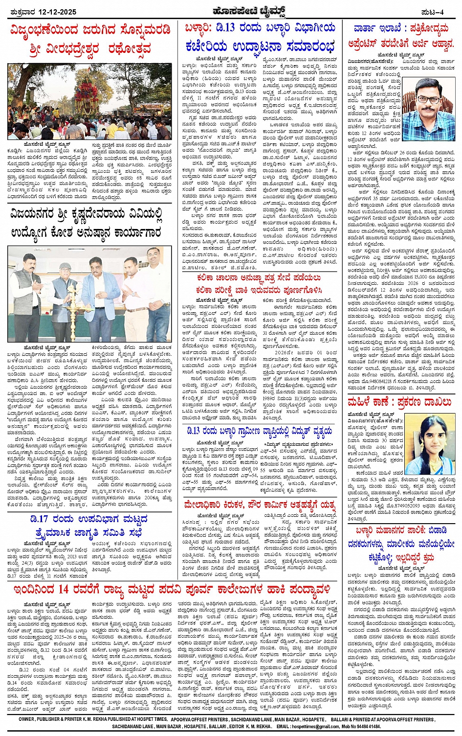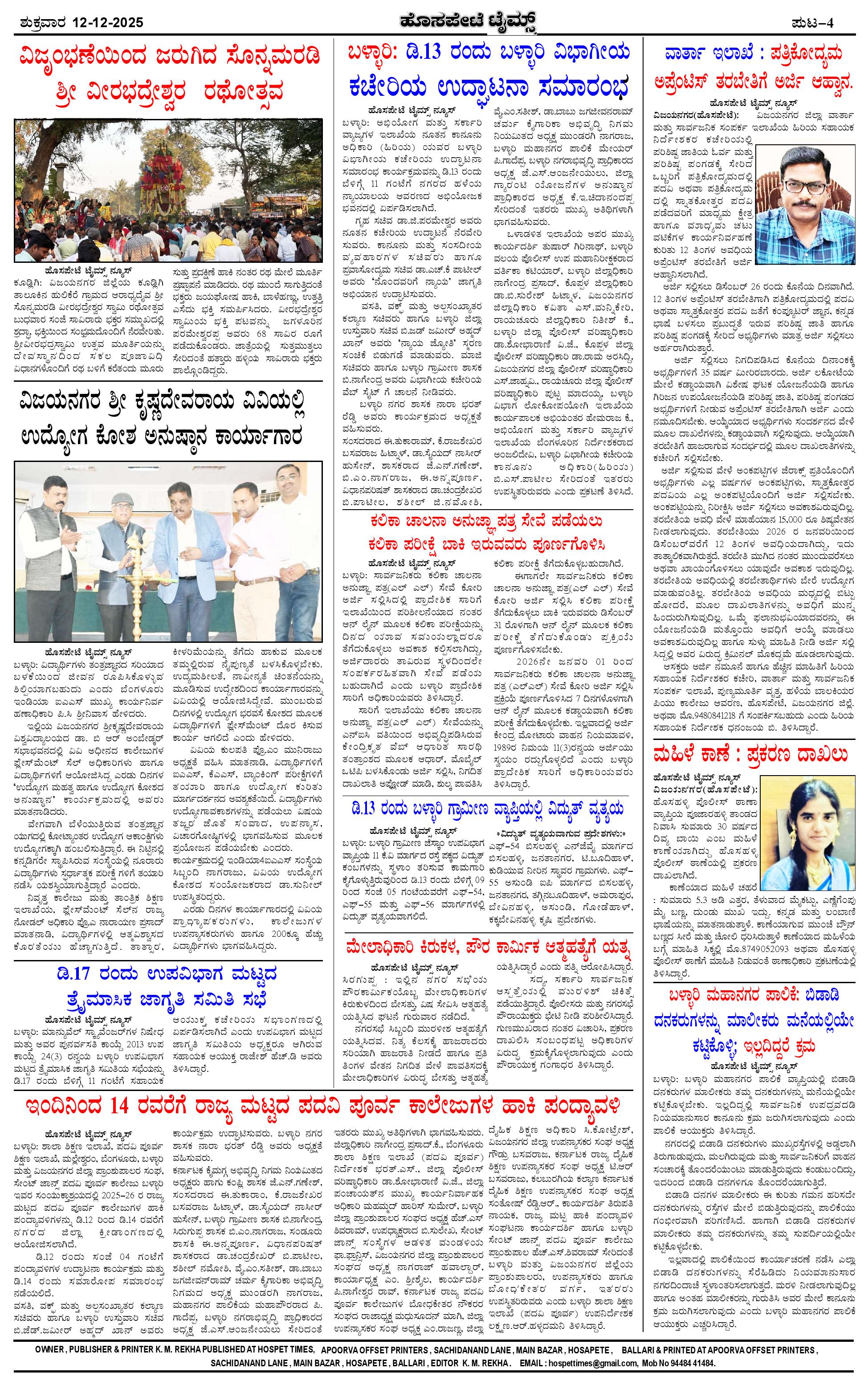 ಮಾಧ್ಯಮ ಅಕಾಡೆಮಿ ಪ್ರಶಸ್ತಿ ಪುರಸ್ಕೃತ 'ಹೊಸಪೇಟೆ ಟೈಮ್ಸ್' Page: 4 December 12, 2025 << First << 4 >> Last >> Page 1Page 2Page 3Page 4 × ಮಾಧ್ಯಮ ಅಕಾಡೆಮಿ ಪ್ರಶಸ್ತಿ ಪುರಸ್ಕೃತ 'ಹೊಸಪೇಟೆ ಟೈಮ್ಸ್' HPT-12122025-4-page-001HPT-12122025-4-page-002HPT-12122025-4-page-003HPT-12122025-4-page-004 << First << 4 >> Last >> HPT-12122025-4-page-001HPT-12122025-4-page-002HPT-12122025-4-page-003HPT-12122025-4-page-004 HPT-12122025-4-page-004