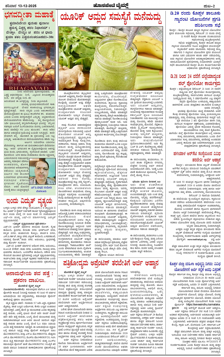 ಮಾಧ್ಯಮ ಅಕಾಡೆಮಿ ಪ್ರಶಸ್ತಿ ಪುರಸ್ಕೃತ 'ಹೊಸಪೇಟೆ ಟೈಮ್ಸ್' Page: 2 December 13, 2025 << First << 2 >> Last >> Page 1Page 2Page 3Page 4 × ಮಾಧ್ಯಮ ಅಕಾಡೆಮಿ ಪ್ರಶಸ್ತಿ ಪುರಸ್ಕೃತ 'ಹೊಸಪೇಟೆ ಟೈಮ್ಸ್' HPT-13122025--4-page-001HPT-13122025--4-page-002HPT-13122025--4-page-003HPT-13122025--4-page-004 << First << 2 >> Last >> HPT-13122025--4-page-001HPT-13122025--4-page-002HPT-13122025--4-page-003HPT-13122025--4-page-004 HPT-13122025--4-page-002