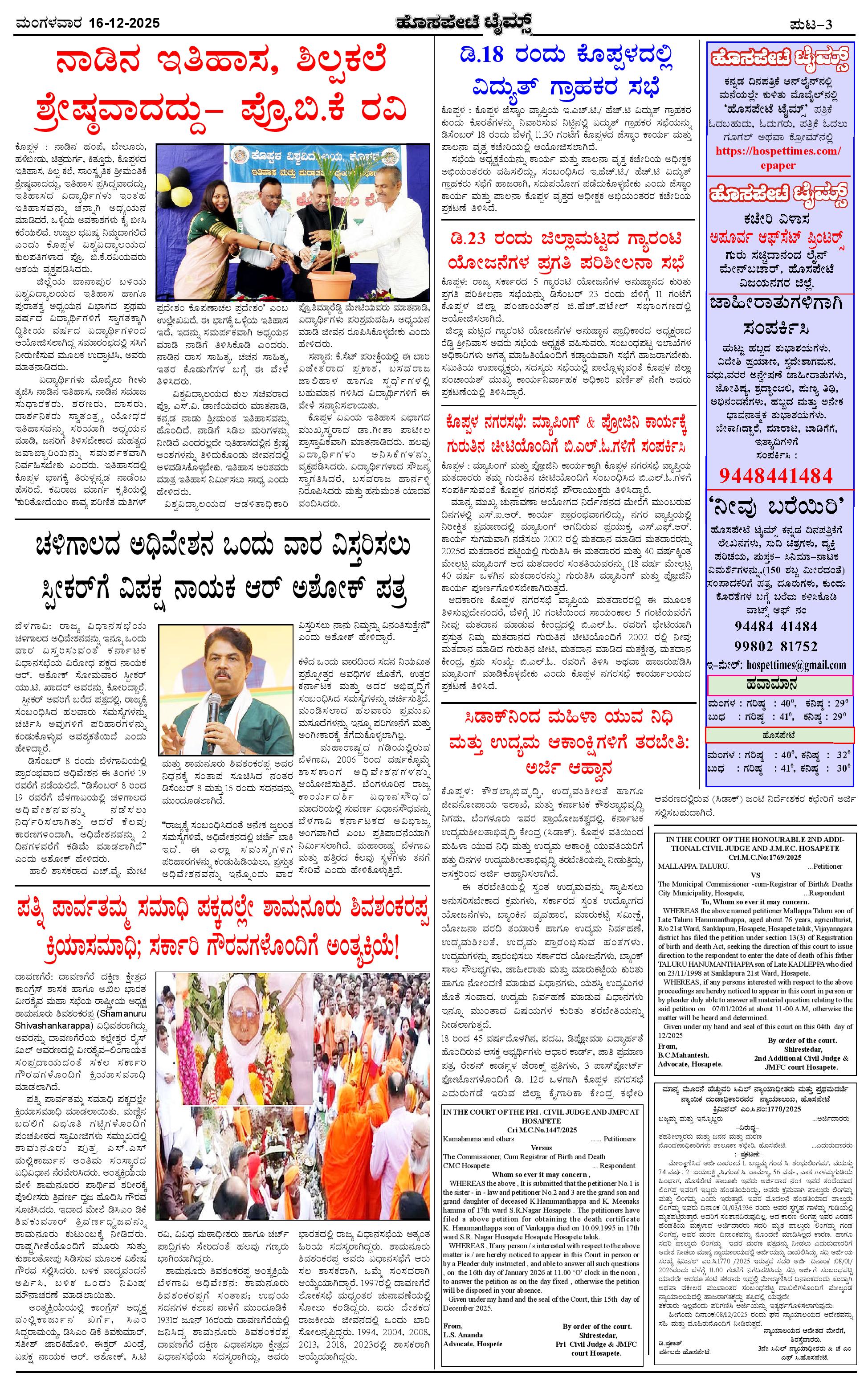 ಮಾಧ್ಯಮ ಅಕಾಡೆಮಿ ಪ್ರಶಸ್ತಿ ಪುರಸ್ಕೃತ 'ಹೊಸಪೇಟೆ ಟೈಮ್ಸ್' Page: 3 December 16, 2025 << First << 3 >> Last >> Page 1Page 2Page 3Page 4 × ಮಾಧ್ಯಮ ಅಕಾಡೆಮಿ ಪ್ರಶಸ್ತಿ ಪುರಸ್ಕೃತ 'ಹೊಸಪೇಟೆ ಟೈಮ್ಸ್' HPT-16122025-4-page-001HPT-16122025-4-page-002HPT-16122025-4-page-003HPT-16122025-4-page-004 << First << 3 >> Last >> HPT-16122025-4-page-001HPT-16122025-4-page-002HPT-16122025-4-page-003HPT-16122025-4-page-004 HPT-16122025-4-page-003