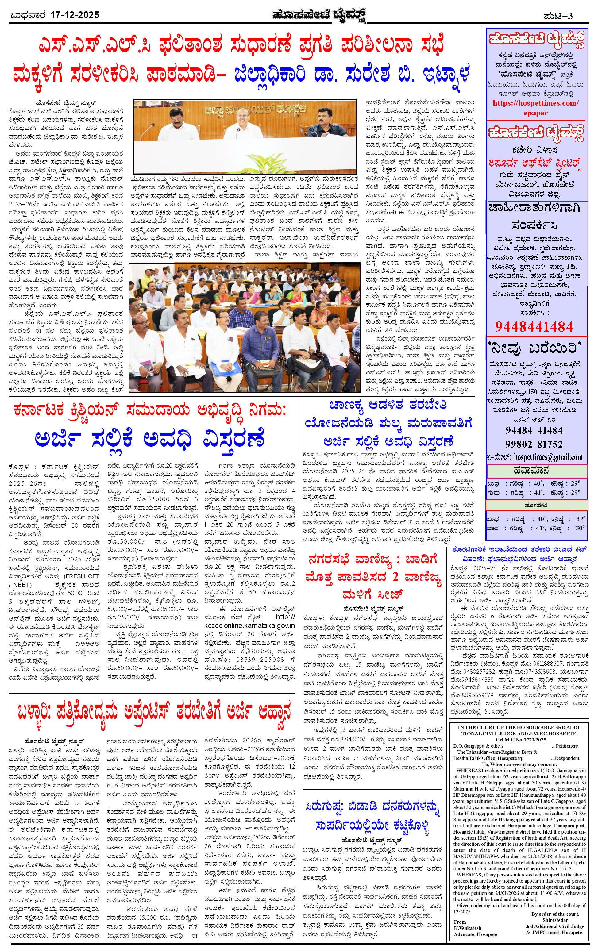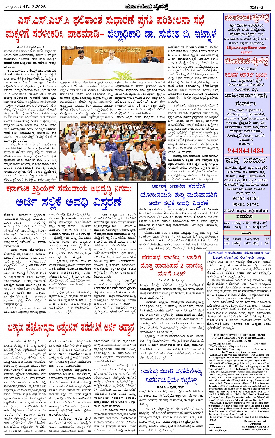 ಮಾಧ್ಯಮ ಅಕಾಡೆಮಿ ಪ್ರಶಸ್ತಿ ಪುರಸ್ಕೃತ 'ಹೊಸಪೇಟೆ ಟೈಮ್ಸ್' Page: 3 December 17, 2025 << First << 3 >> Last >> Page 1Page 2Page 3Page 4 × ಮಾಧ್ಯಮ ಅಕಾಡೆಮಿ ಪ್ರಶಸ್ತಿ ಪುರಸ್ಕೃತ 'ಹೊಸಪೇಟೆ ಟೈಮ್ಸ್' HPT-17122025--4-page-001HPT-17122025--4-page-002HPT-17122025--4-page-003HPT-17122025--4-page-004 << First << 3 >> Last >> HPT-17122025--4-page-001HPT-17122025--4-page-002HPT-17122025--4-page-003HPT-17122025--4-page-004 HPT-17122025--4-page-003