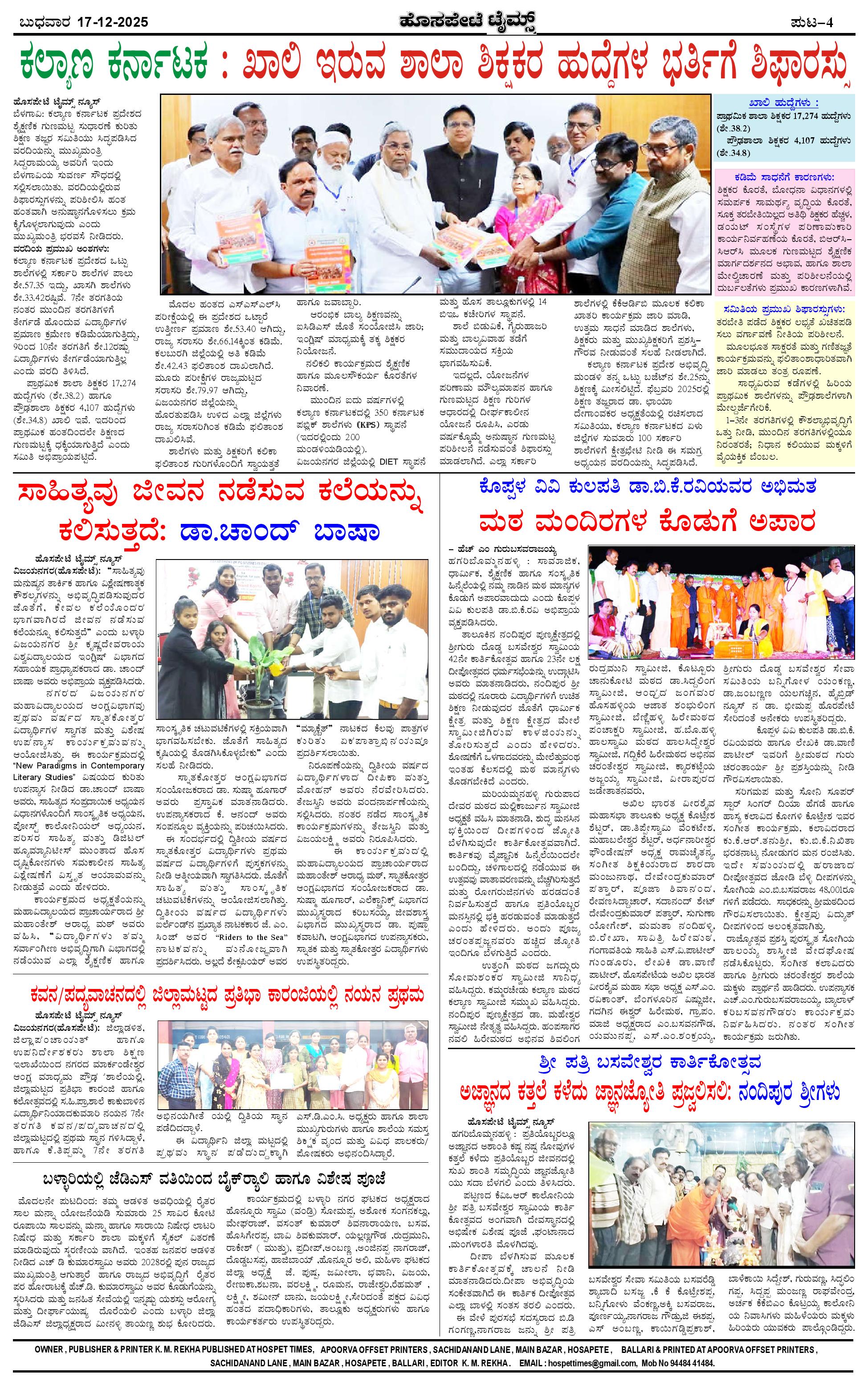 ಮಾಧ್ಯಮ ಅಕಾಡೆಮಿ ಪ್ರಶಸ್ತಿ ಪುರಸ್ಕೃತ 'ಹೊಸಪೇಟೆ ಟೈಮ್ಸ್' Page: 4 December 17, 2025 << First << 4 >> Last >> Page 1Page 2Page 3Page 4 × ಮಾಧ್ಯಮ ಅಕಾಡೆಮಿ ಪ್ರಶಸ್ತಿ ಪುರಸ್ಕೃತ 'ಹೊಸಪೇಟೆ ಟೈಮ್ಸ್' HPT-17122025--4-page-001HPT-17122025--4-page-002HPT-17122025--4-page-003HPT-17122025--4-page-004 << First << 4 >> Last >> HPT-17122025--4-page-001HPT-17122025--4-page-002HPT-17122025--4-page-003HPT-17122025--4-page-004 HPT-17122025--4-page-004
