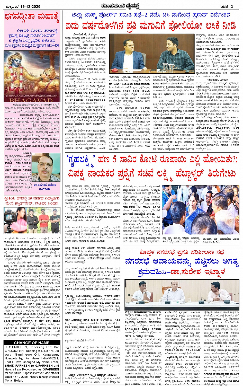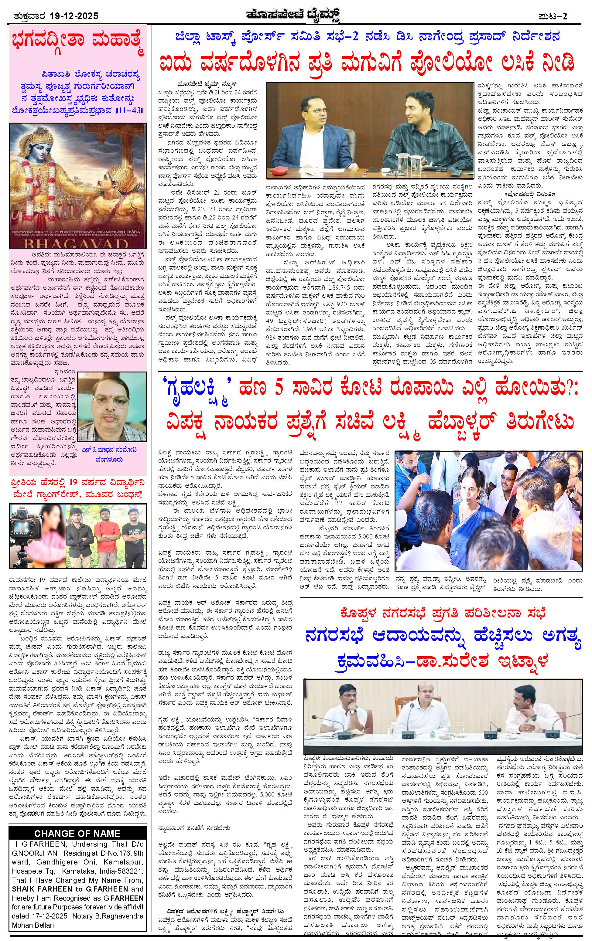 ಮಾಧ್ಯಮ ಅಕಾಡೆಮಿ ಪ್ರಶಸ್ತಿ ಪುರಸ್ಕೃತ 'ಹೊಸಪೇಟೆ ಟೈಮ್ಸ್' Page: 2 December 19, 2025 << First << 2 >> Last >> Page 1Page 2Page 3Page 4 × ಮಾಧ್ಯಮ ಅಕಾಡೆಮಿ ಪ್ರಶಸ್ತಿ ಪುರಸ್ಕೃತ 'ಹೊಸಪೇಟೆ ಟೈಮ್ಸ್' HPT-19122025--4-page-001HPT-19122025--4-page-002HPT-19122025--4-page-003HPT-19122025--4-page-004 << First << 2 >> Last >> HPT-19122025--4-page-001HPT-19122025--4-page-002HPT-19122025--4-page-003HPT-19122025--4-page-004 HPT-19122025--4-page-002