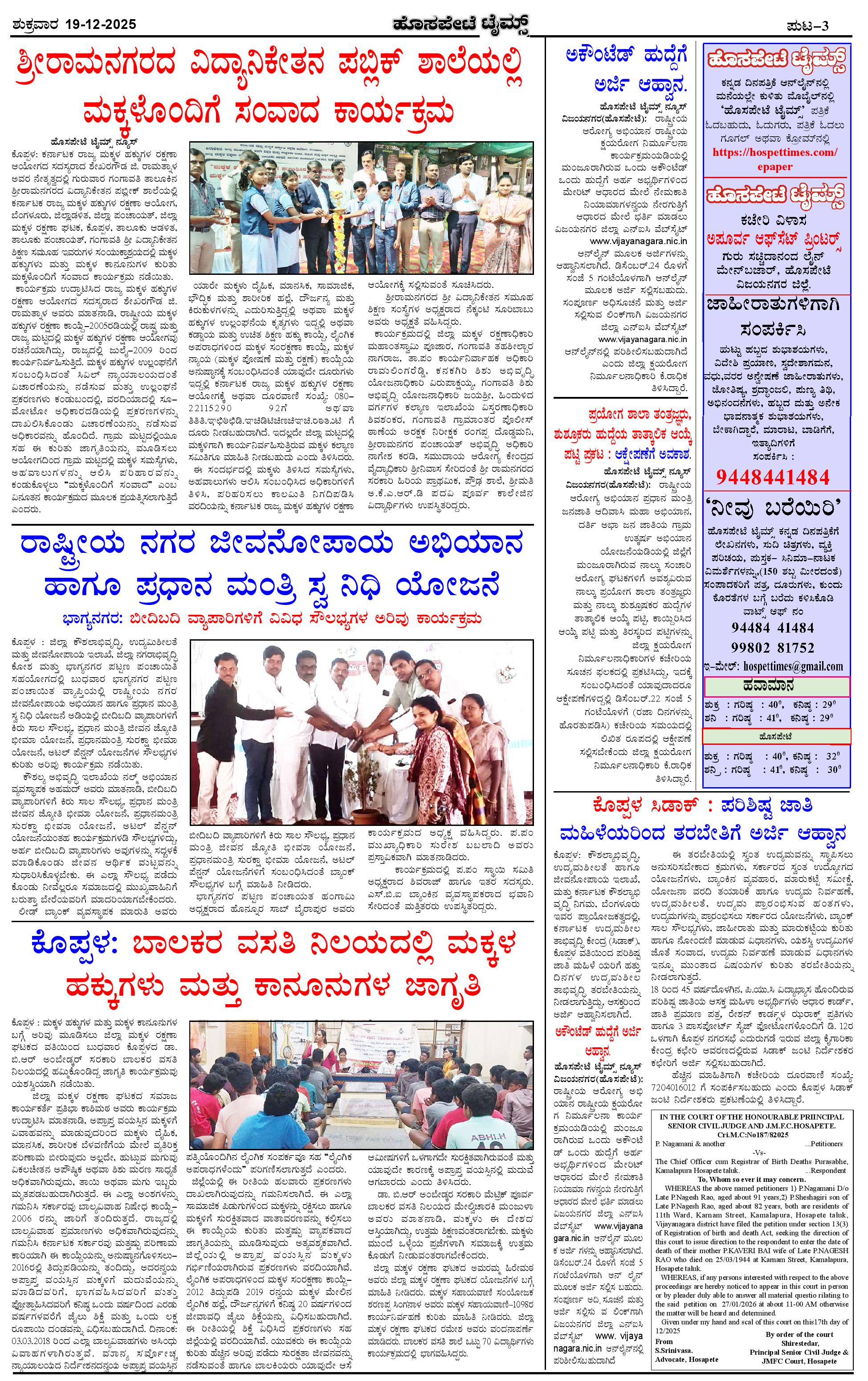 ಮಾಧ್ಯಮ ಅಕಾಡೆಮಿ ಪ್ರಶಸ್ತಿ ಪುರಸ್ಕೃತ 'ಹೊಸಪೇಟೆ ಟೈಮ್ಸ್' Page: 3 December 19, 2025 << First << 3 >> Last >> Page 1Page 2Page 3Page 4 × ಮಾಧ್ಯಮ ಅಕಾಡೆಮಿ ಪ್ರಶಸ್ತಿ ಪುರಸ್ಕೃತ 'ಹೊಸಪೇಟೆ ಟೈಮ್ಸ್' HPT-19122025--4-page-001HPT-19122025--4-page-002HPT-19122025--4-page-003HPT-19122025--4-page-004 << First << 3 >> Last >> HPT-19122025--4-page-001HPT-19122025--4-page-002HPT-19122025--4-page-003HPT-19122025--4-page-004 HPT-19122025--4-page-003