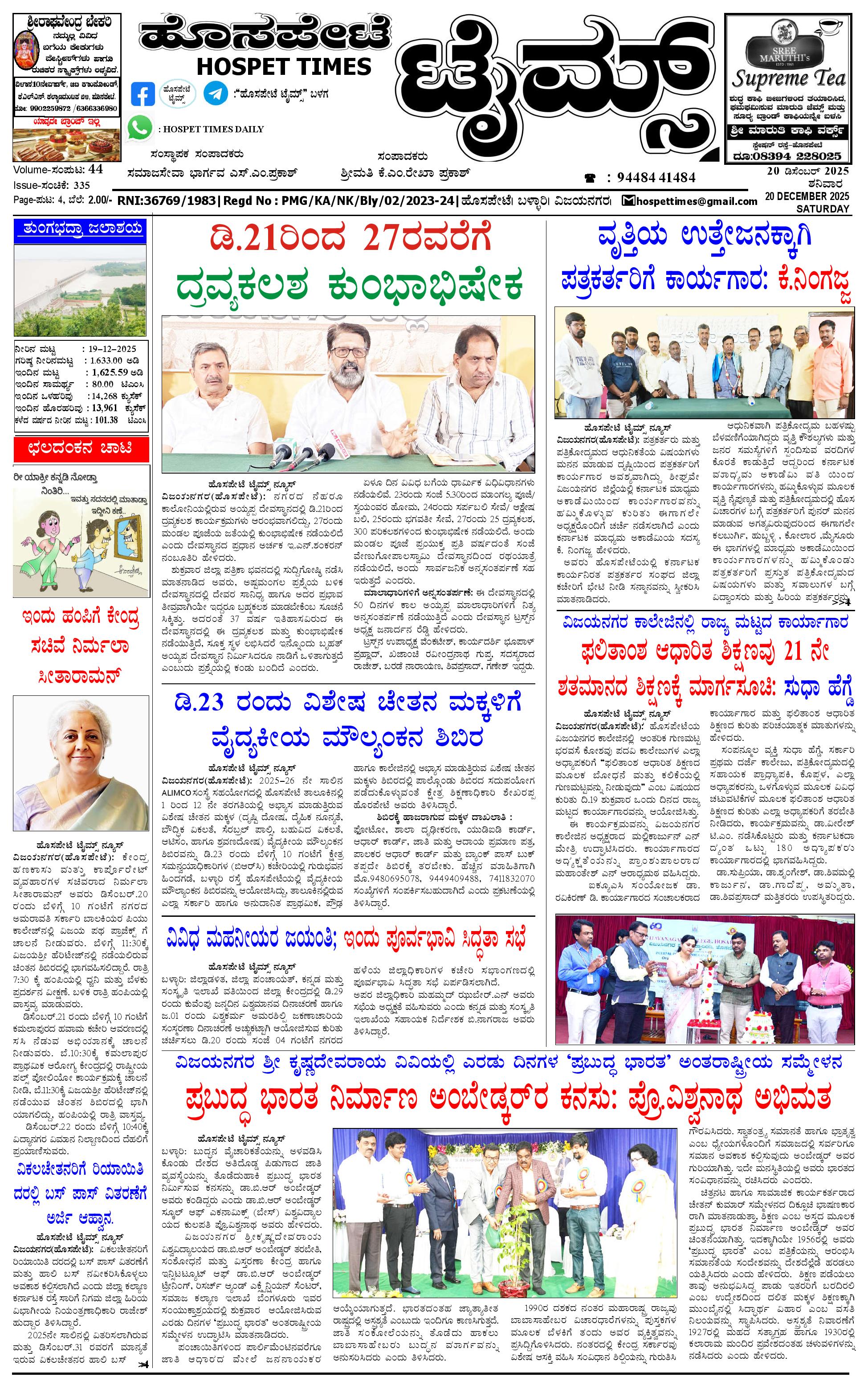 ಮಾಧ್ಯಮ ಅಕಾಡೆಮಿ ಪ್ರಶಸ್ತಿ ಪುರಸ್ಕೃತ 'ಹೊಸಪೇಟೆ ಟೈಮ್ಸ್' December 20, 2025 << First << 1 >> Last >> Page 1Page 2Page 3Page 4 × ಮಾಧ್ಯಮ ಅಕಾಡೆಮಿ ಪ್ರಶಸ್ತಿ ಪುರಸ್ಕೃತ 'ಹೊಸಪೇಟೆ ಟೈಮ್ಸ್' HPT-20122025--4-page-001HPT-20122025--4-page-002HPT-20122025--4-page-003HPT-20122025--4-page-004 << First << 1 >> Last >> HPT-20122025--4-page-001HPT-20122025--4-page-002HPT-20122025--4-page-003HPT-20122025--4-page-004 HPT-20122025--4-page-001