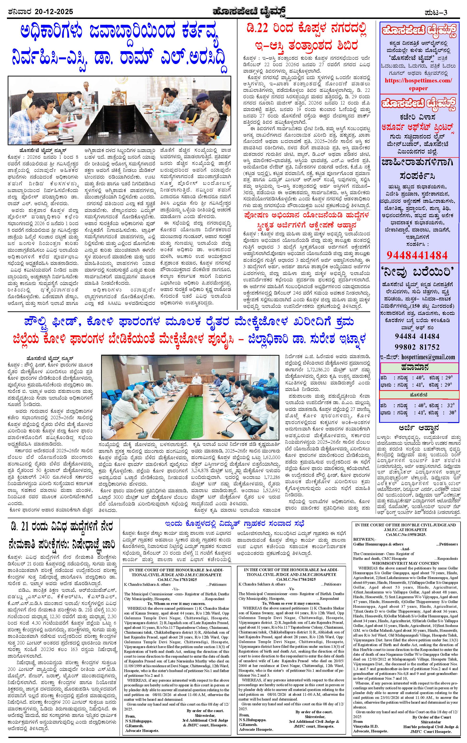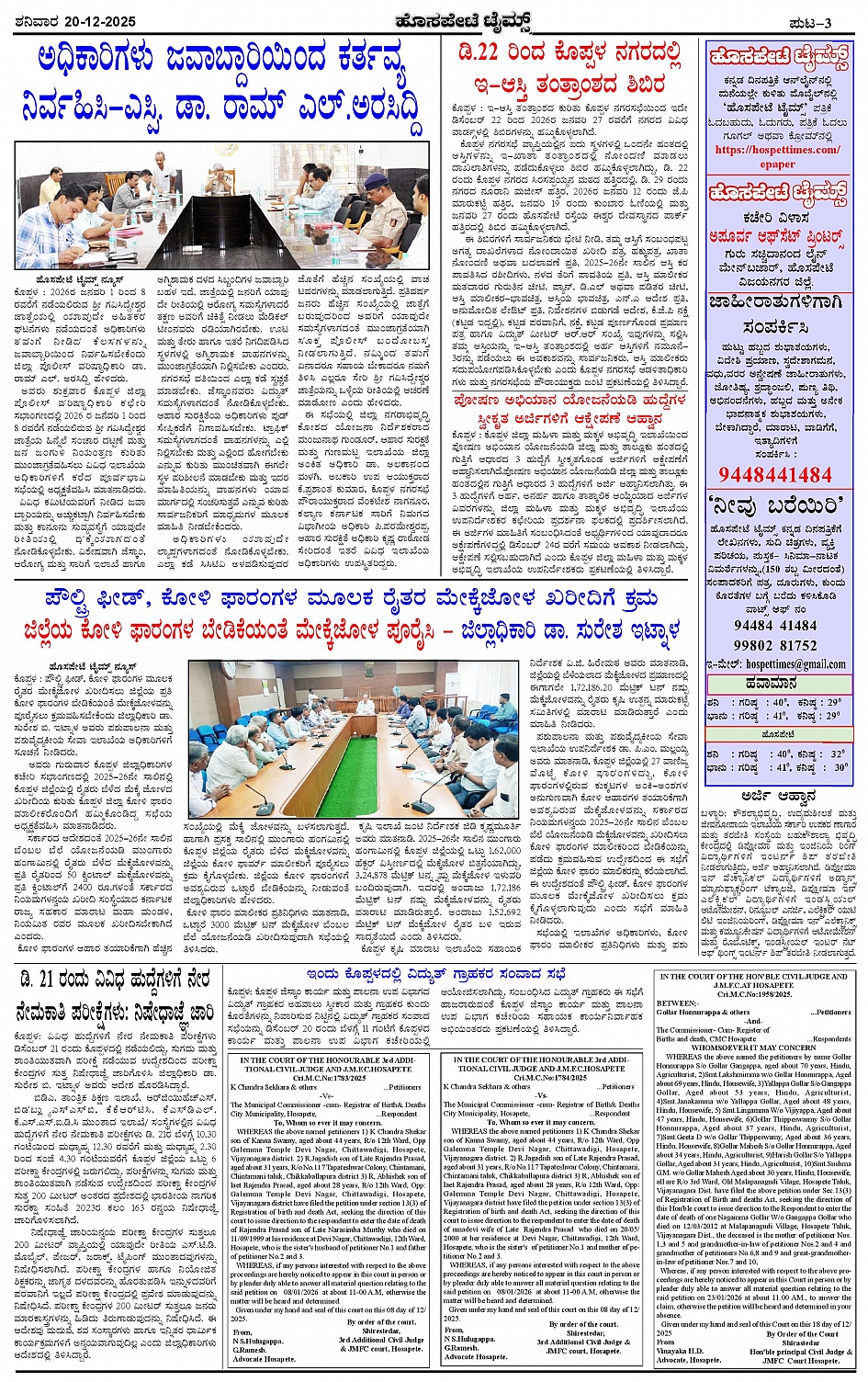ಮಾಧ್ಯಮ ಅಕಾಡೆಮಿ ಪ್ರಶಸ್ತಿ ಪುರಸ್ಕೃತ 'ಹೊಸಪೇಟೆ ಟೈಮ್ಸ್' Page: 3 December 20, 2025 << First << 3 >> Last >> Page 1Page 2Page 3Page 4 × ಮಾಧ್ಯಮ ಅಕಾಡೆಮಿ ಪ್ರಶಸ್ತಿ ಪುರಸ್ಕೃತ 'ಹೊಸಪೇಟೆ ಟೈಮ್ಸ್' HPT-20122025--4-page-001HPT-20122025--4-page-002HPT-20122025--4-page-003HPT-20122025--4-page-004 << First << 3 >> Last >> HPT-20122025--4-page-001HPT-20122025--4-page-002HPT-20122025--4-page-003HPT-20122025--4-page-004 HPT-20122025--4-page-003