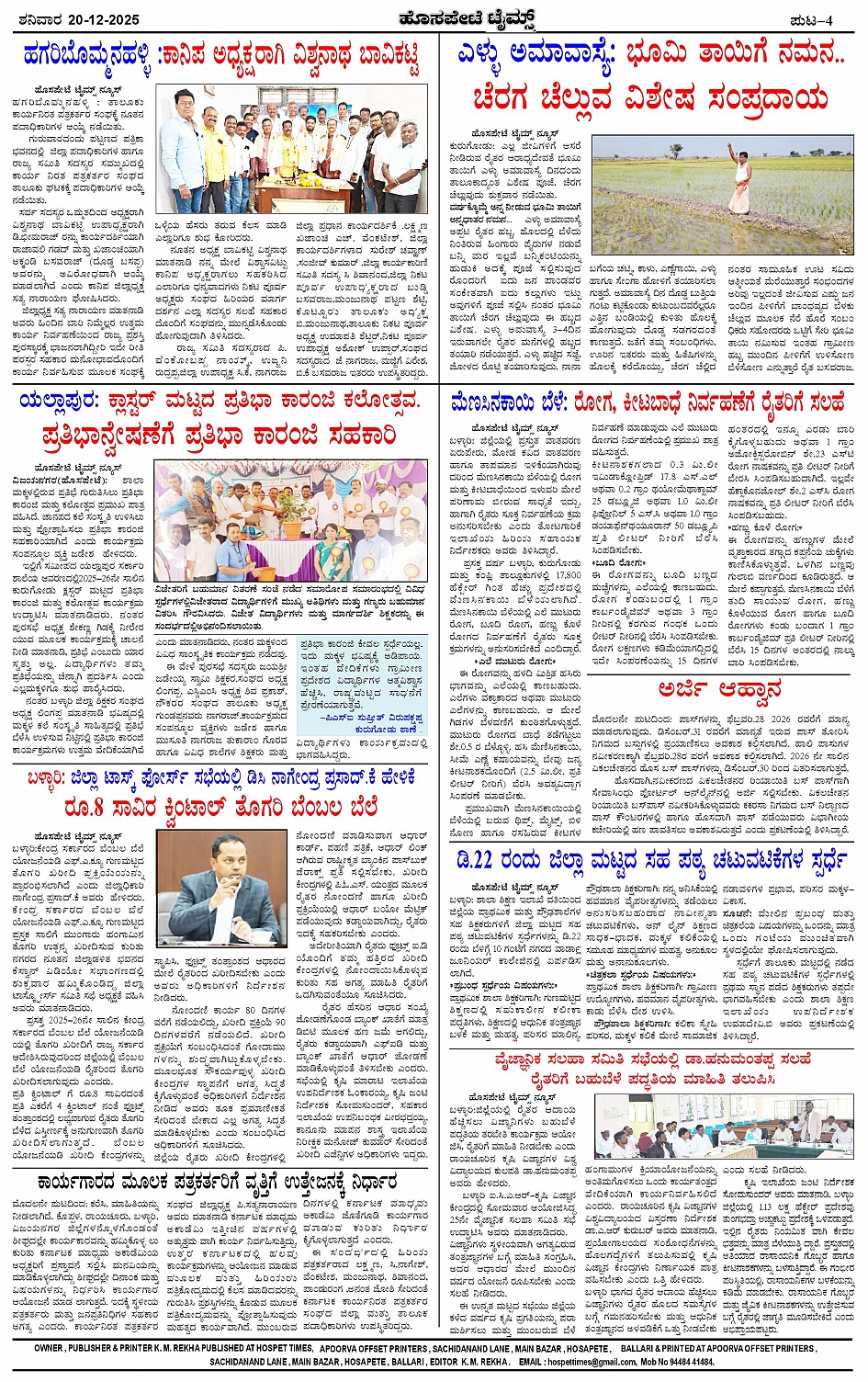 ಮಾಧ್ಯಮ ಅಕಾಡೆಮಿ ಪ್ರಶಸ್ತಿ ಪುರಸ್ಕೃತ 'ಹೊಸಪೇಟೆ ಟೈಮ್ಸ್' Page: 4 December 20, 2025 << First << 4 >> Last >> Page 1Page 2Page 3Page 4 × ಮಾಧ್ಯಮ ಅಕಾಡೆಮಿ ಪ್ರಶಸ್ತಿ ಪುರಸ್ಕೃತ 'ಹೊಸಪೇಟೆ ಟೈಮ್ಸ್' HPT-20122025--4-page-001HPT-20122025--4-page-002HPT-20122025--4-page-003HPT-20122025--4-page-004 << First << 4 >> Last >> HPT-20122025--4-page-001HPT-20122025--4-page-002HPT-20122025--4-page-003HPT-20122025--4-page-004 HPT-20122025--4-page-004