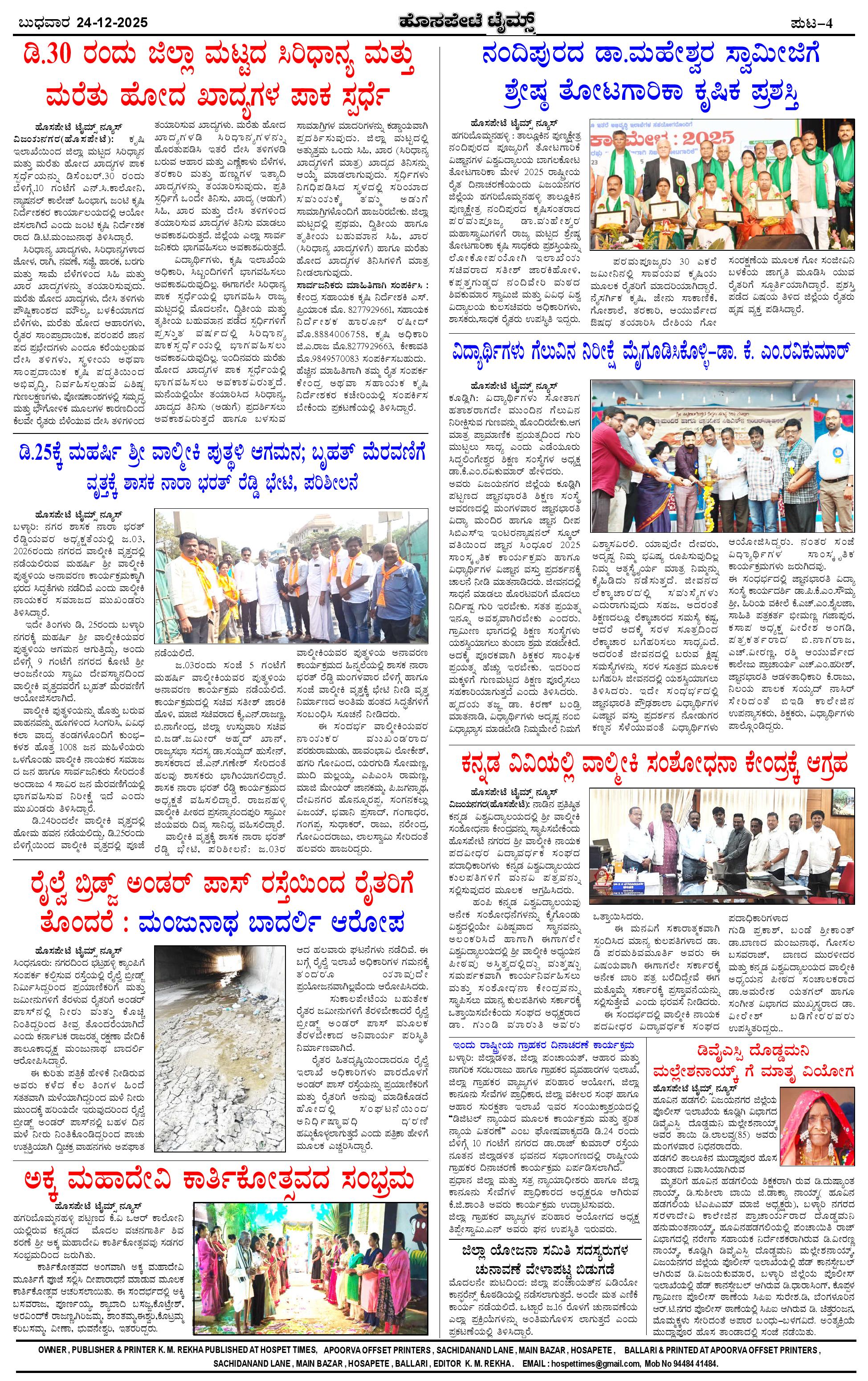 ಮಾಧ್ಯಮ ಅಕಾಡೆಮಿ ಪ್ರಶಸ್ತಿ ಪುರಸ್ಕೃತ 'ಹೊಸಪೇಟೆ ಟೈಮ್ಸ್' Page: 4 December 24, 2025 << First << 4 >> Last >> Page 1Page 2Page 3Page 4 × ಮಾಧ್ಯಮ ಅಕಾಡೆಮಿ ಪ್ರಶಸ್ತಿ ಪುರಸ್ಕೃತ 'ಹೊಸಪೇಟೆ ಟೈಮ್ಸ್' HPT-24122025--4-page-001HPT-24122025--4-page-002HPT-24122025--4-page-003HPT-24122025--4-page-004 << First << 4 >> Last >> HPT-24122025--4-page-001HPT-24122025--4-page-002HPT-24122025--4-page-003HPT-24122025--4-page-004 HPT-24122025--4-page-004