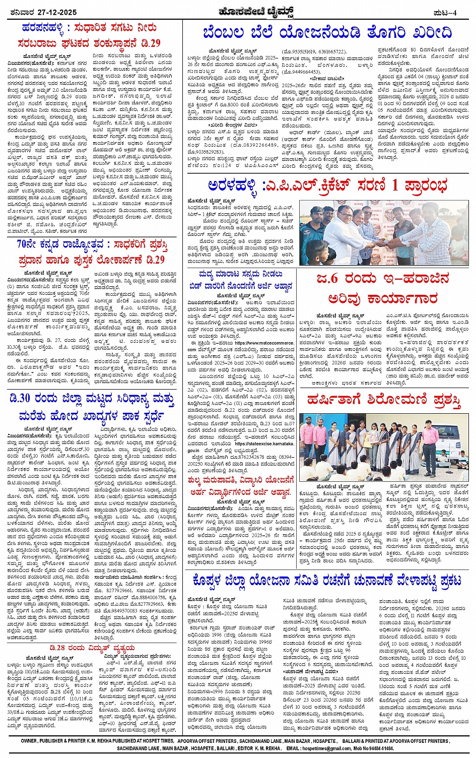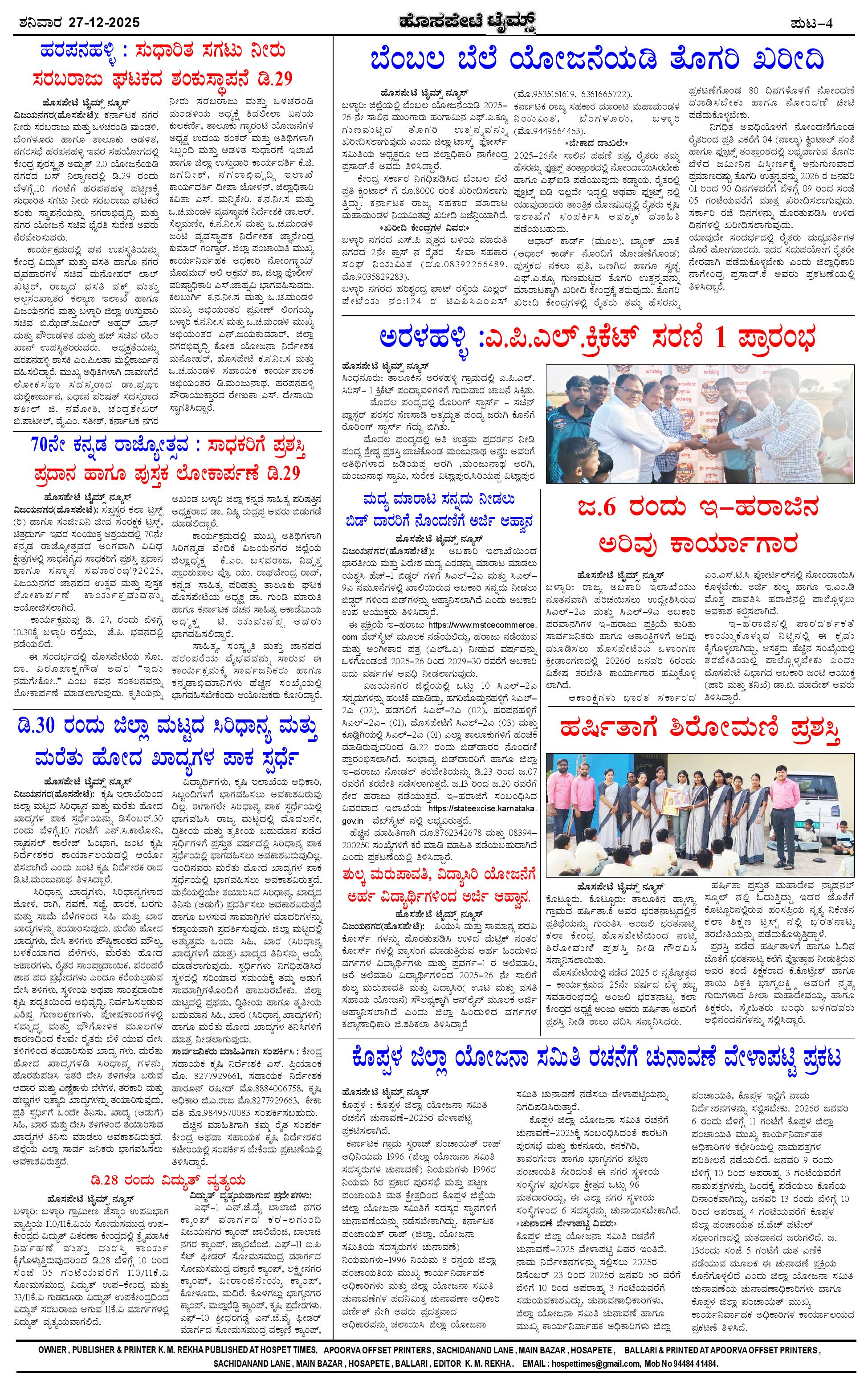 ಮಾಧ್ಯಮ ಅಕಾಡೆಮಿ ಪ್ರಶಸ್ತಿ ಪುರಸ್ಕೃತ 'ಹೊಸಪೇಟೆ ಟೈಮ್ಸ್' Page: 4 December 27, 2025 << First << 4 >> Last >> Page 1Page 2Page 3Page 4 × ಮಾಧ್ಯಮ ಅಕಾಡೆಮಿ ಪ್ರಶಸ್ತಿ ಪುರಸ್ಕೃತ 'ಹೊಸಪೇಟೆ ಟೈಮ್ಸ್' HPT-27122025--4-page-001HPT-27122025--4-page-002HPT-27122025--4-page-003HPT-27122025--4-page-004 << First << 4 >> Last >> HPT-27122025--4-page-001HPT-27122025--4-page-002HPT-27122025--4-page-003HPT-27122025--4-page-004 HPT-27122025--4-page-004