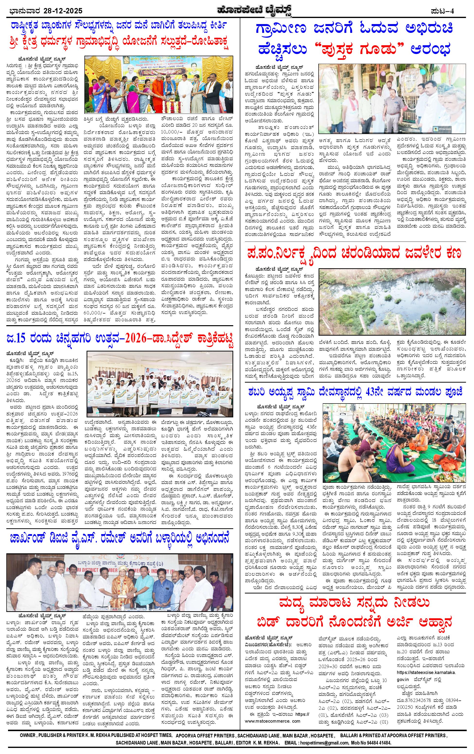 ಮಾಧ್ಯಮ ಅಕಾಡೆಮಿ ಪ್ರಶಸ್ತಿ ಪುರಸ್ಕೃತ 'ಹೊಸಪೇಟೆ ಟೈಮ್ಸ್' Page: 4 December 28, 2025 << First << 4 >> Last >> Page 1Page 2Page 3Page 4 × ಮಾಧ್ಯಮ ಅಕಾಡೆಮಿ ಪ್ರಶಸ್ತಿ ಪುರಸ್ಕೃತ 'ಹೊಸಪೇಟೆ ಟೈಮ್ಸ್' HPT-28122025-4 PAGE-page-001HPT-28122025-4 PAGE-page-002HPT-28122025-4 PAGE-page-003HPT-28122025-4 PAGE-page-004 << First << 4 >> Last >> HPT-28122025-4 PAGE-page-001HPT-28122025-4 PAGE-page-002HPT-28122025-4 PAGE-page-003HPT-28122025-4 PAGE-page-004 HPT-28122025-4 PAGE-page-004