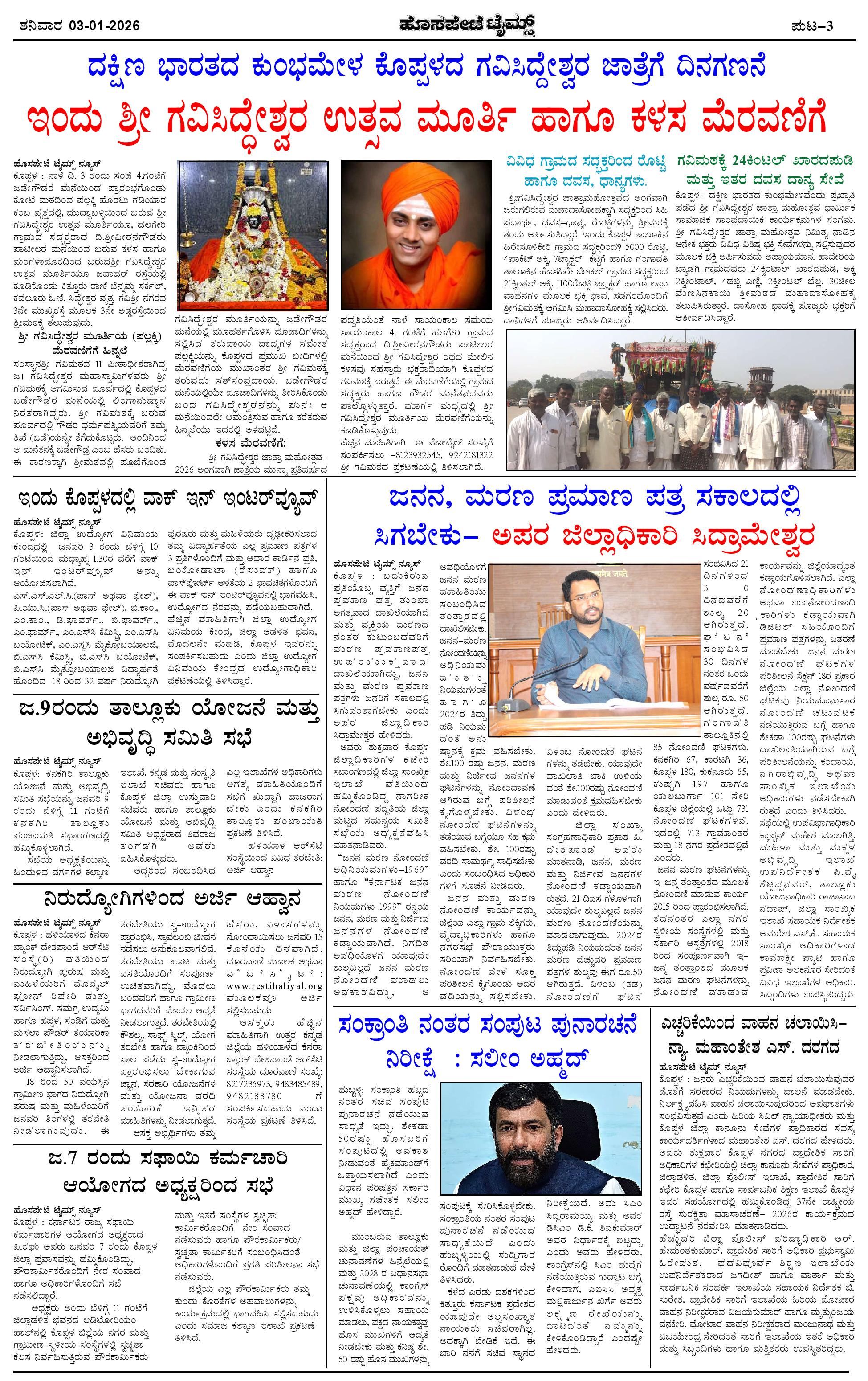 ಮಾಧ್ಯಮ ಅಕಾಡೆಮಿ ಪ್ರಶಸ್ತಿ ಪುರಸ್ಕೃತ 'ಹೊಸಪೇಟೆ ಟೈಮ್ಸ್' Page: 3 January 03, 2026 ಸ್ಥಳೀಯ ಸುದ್ದಿಗಳ ನೈಜ ಬಿಂಬ << First << 3 >> Last >> Page 1Page 2Page 3Page 4 × ಮಾಧ್ಯಮ ಅಕಾಡೆಮಿ ಪ್ರಶಸ್ತಿ ಪುರಸ್ಕೃತ 'ಹೊಸಪೇಟೆ ಟೈಮ್ಸ್' JAN03012026-page-001JAN03012026-page-002JAN03012026-page-003JAN03012026-page-004 << First << 3 >> Last >> JAN03012026-page-001JAN03012026-page-002JAN03012026-page-003JAN03012026-page-004 JAN03012026-page-003