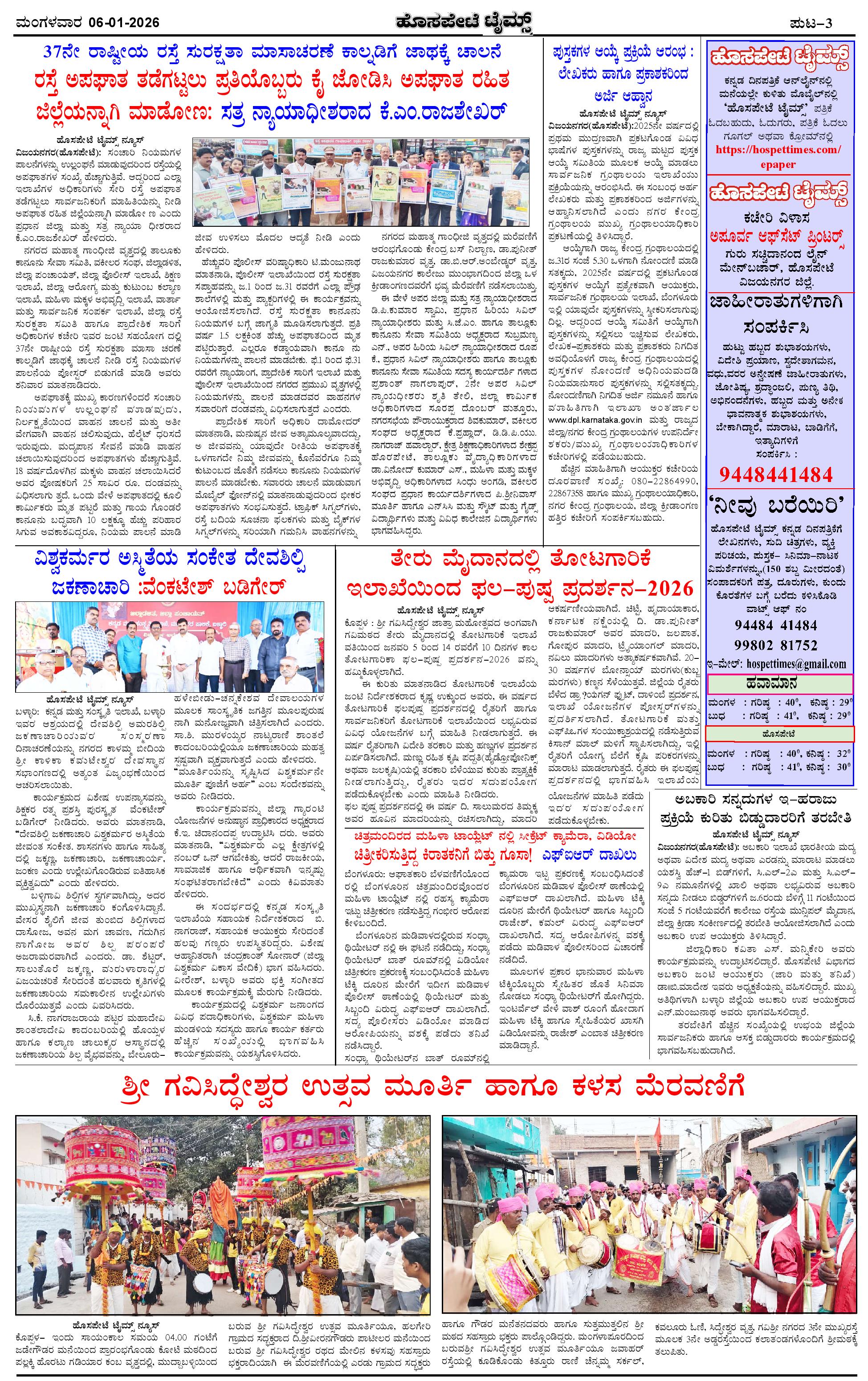 ಮಾಧ್ಯಮ ಅಕಾಡೆಮಿ ಪ್ರಶಸ್ತಿ ಪುರಸ್ಕೃತ 'ಹೊಸಪೇಟೆ ಟೈಮ್ಸ್' Page: 3 January 06, 2025 << First << 3 >> Last >> Page 1Page 2Page 3Page 4 × ಮಾಧ್ಯಮ ಅಕಾಡೆಮಿ ಪ್ರಶಸ್ತಿ ಪುರಸ್ಕೃತ 'ಹೊಸಪೇಟೆ ಟೈಮ್ಸ್' HPT-06012026-4-page-001HPT-06012026-4-page-002HPT-06012026-4-page-003HPT-06012026-4-page-004 << First << 3 >> Last >> HPT-06012026-4-page-001HPT-06012026-4-page-002HPT-06012026-4-page-003HPT-06012026-4-page-004 HPT-06012026-4-page-003