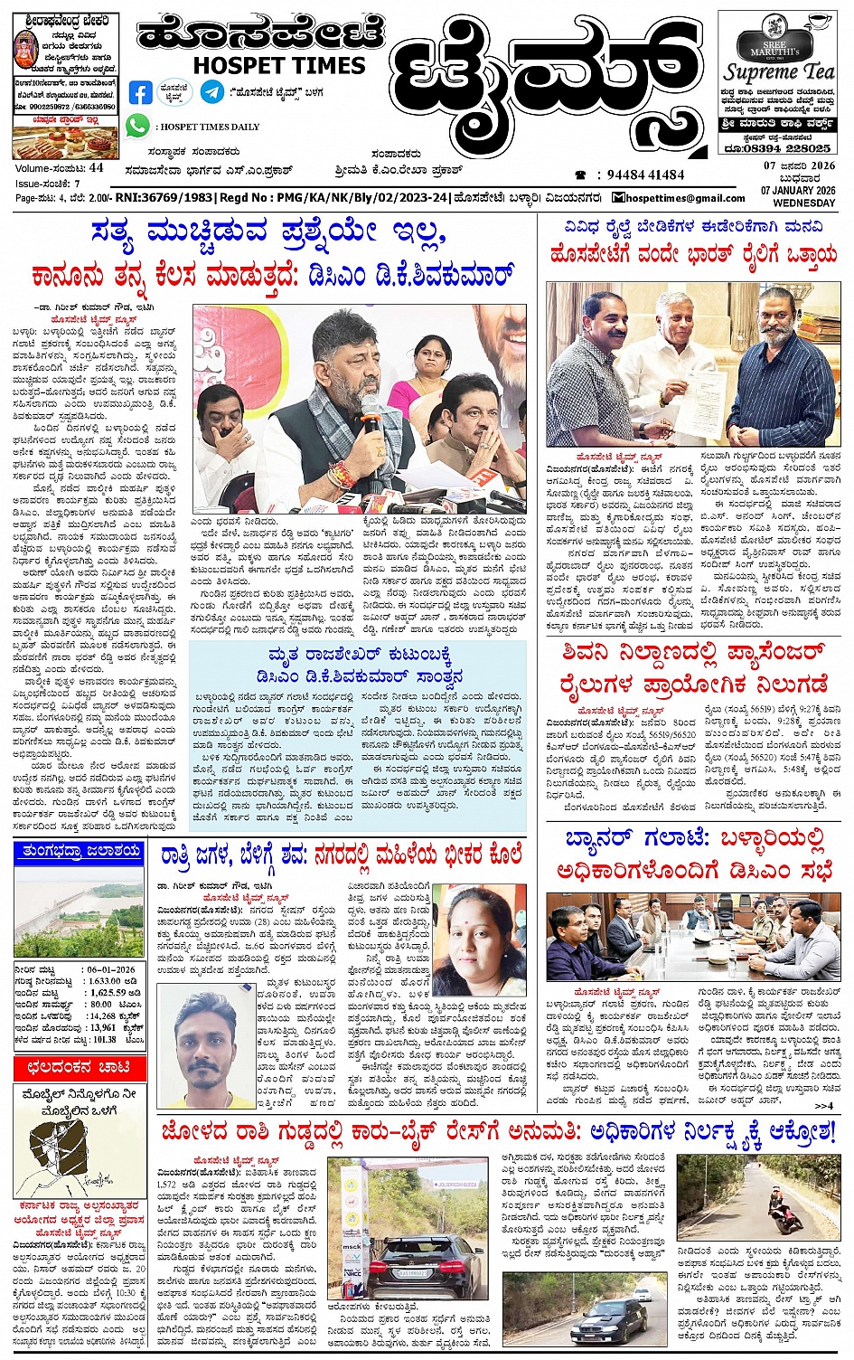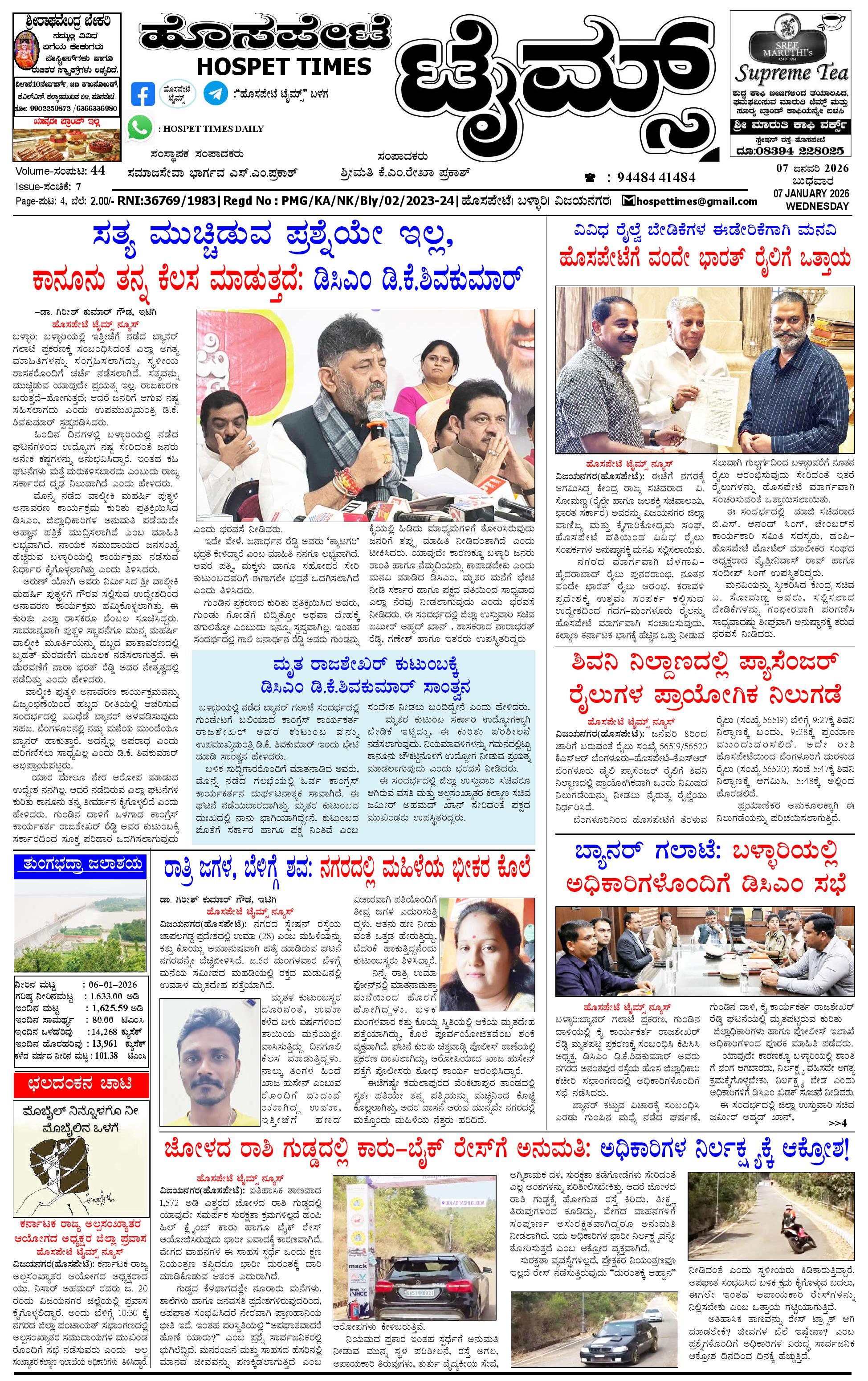 ಮಾಧ್ಯಮ ಅಕಾಡೆಮಿ ಪ್ರಶಸ್ತಿ ಪುರಸ್ಕೃತ 'ಹೊಸಪೇಟೆ ಟೈಮ್ಸ್' January 07, 2026 << First << 1 >> Last >> Page 1Page 2Page 3Page 4 × ಮಾಧ್ಯಮ ಅಕಾಡೆಮಿ ಪ್ರಶಸ್ತಿ ಪುರಸ್ಕೃತ 'ಹೊಸಪೇಟೆ ಟೈಮ್ಸ್' HPT-07012026--4-page-001HPT-07012026--4-page-002HPT-07012026--4-page-003HPT-07012026--4-page-004 << First << 1 >> Last >> HPT-07012026--4-page-001HPT-07012026--4-page-002HPT-07012026--4-page-003HPT-07012026--4-page-004 HPT-07012026--4-page-001