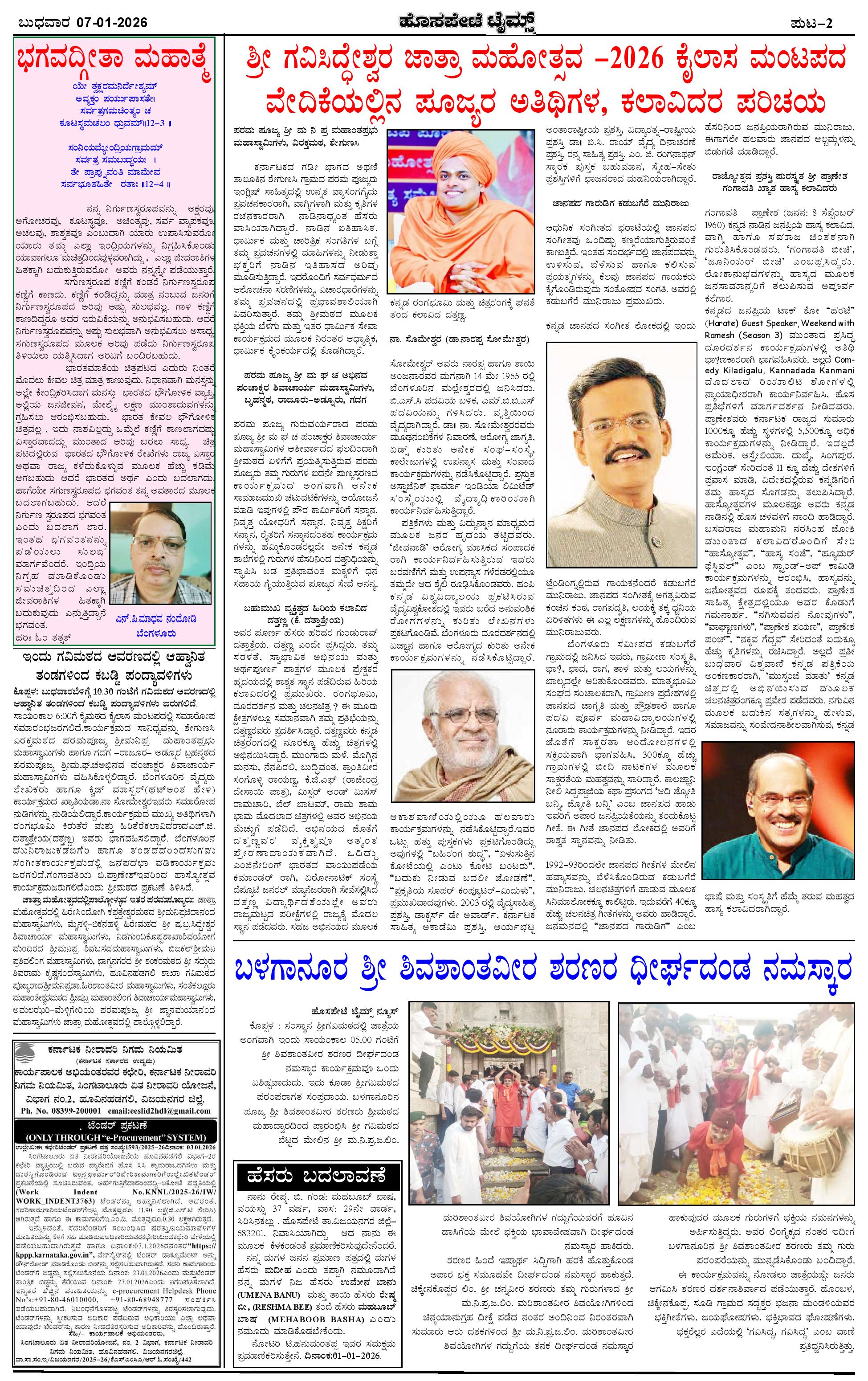 ಮಾಧ್ಯಮ ಅಕಾಡೆಮಿ ಪ್ರಶಸ್ತಿ ಪುರಸ್ಕೃತ 'ಹೊಸಪೇಟೆ ಟೈಮ್ಸ್' Page: 2 January 07, 2026 << First << 2 >> Last >> Page 1Page 2Page 3Page 4 × ಮಾಧ್ಯಮ ಅಕಾಡೆಮಿ ಪ್ರಶಸ್ತಿ ಪುರಸ್ಕೃತ 'ಹೊಸಪೇಟೆ ಟೈಮ್ಸ್' HPT-07012026--4-page-001HPT-07012026--4-page-002HPT-07012026--4-page-003HPT-07012026--4-page-004 << First << 2 >> Last >> HPT-07012026--4-page-001HPT-07012026--4-page-002HPT-07012026--4-page-003HPT-07012026--4-page-004 HPT-07012026--4-page-002