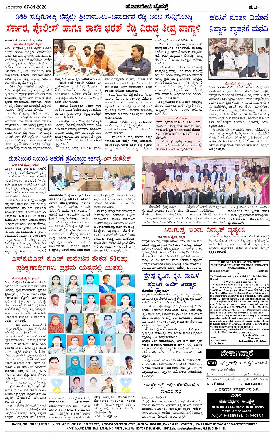 ಮಾಧ್ಯಮ ಅಕಾಡೆಮಿ ಪ್ರಶಸ್ತಿ ಪುರಸ್ಕೃತ 'ಹೊಸಪೇಟೆ ಟೈಮ್ಸ್' Page: 4 January 07, 2026 << First << 4 >> Last >> Page 1Page 2Page 3Page 4 × ಮಾಧ್ಯಮ ಅಕಾಡೆಮಿ ಪ್ರಶಸ್ತಿ ಪುರಸ್ಕೃತ 'ಹೊಸಪೇಟೆ ಟೈಮ್ಸ್' HPT-07012026--4-page-001HPT-07012026--4-page-002HPT-07012026--4-page-003HPT-07012026--4-page-004 << First << 4 >> Last >> HPT-07012026--4-page-001HPT-07012026--4-page-002HPT-07012026--4-page-003HPT-07012026--4-page-004 HPT-07012026--4-page-004