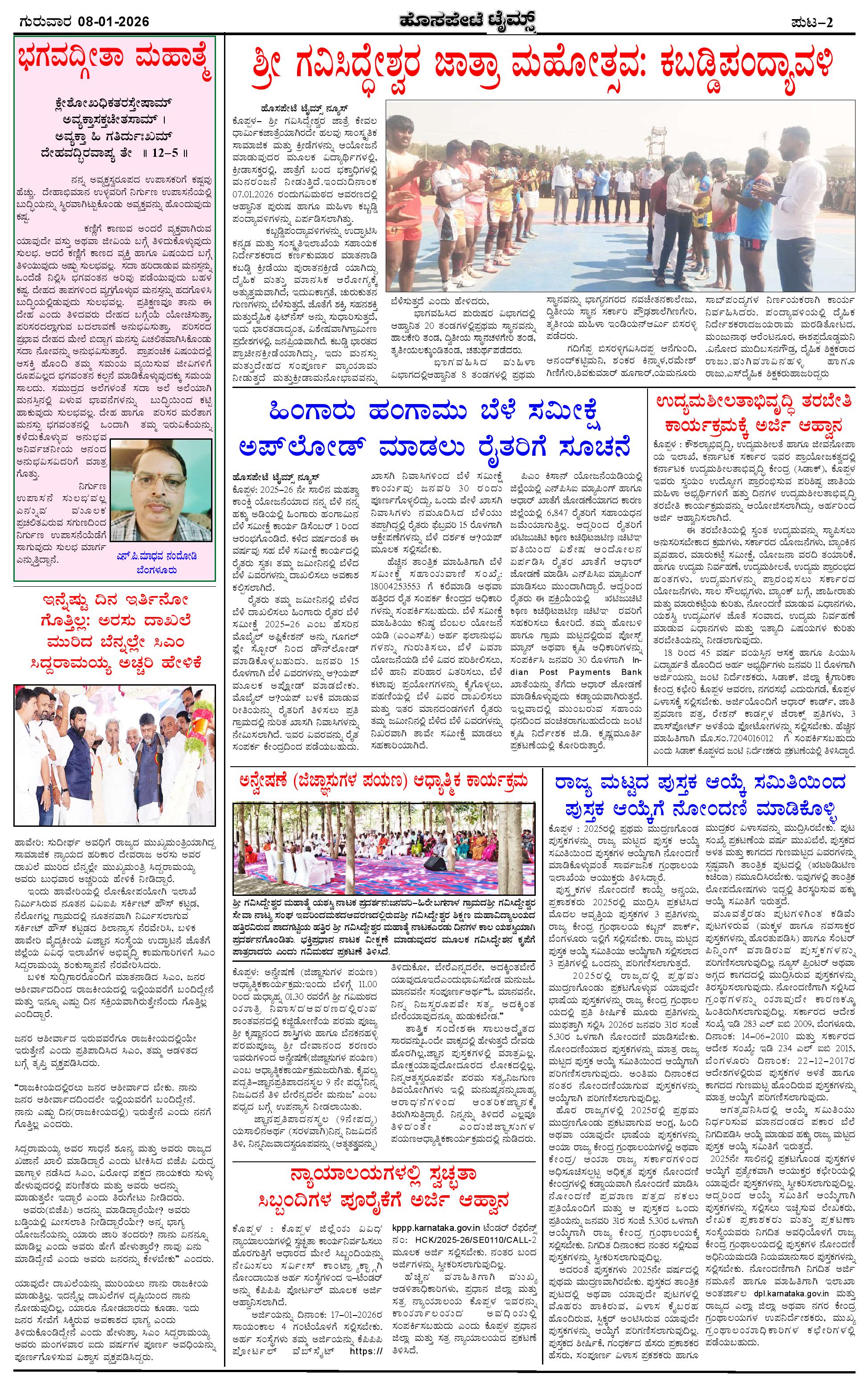 ಮಾಧ್ಯಮ ಅಕಾಡೆಮಿ ಪ್ರಶಸ್ತಿ ಪುರಸ್ಕೃತ 'ಹೊಸಪೇಟೆ ಟೈಮ್ಸ್' Page: 2 January 08, 2026 << First << 2 >> Last >> Page 1Page 2Page 3Page 4 × ಮಾಧ್ಯಮ ಅಕಾಡೆಮಿ ಪ್ರಶಸ್ತಿ ಪುರಸ್ಕೃತ 'ಹೊಸಪೇಟೆ ಟೈಮ್ಸ್' HPT-08012026-4-page-001HPT-08012026-4-page-002HPT-08012026-4-page-003HPT-08012026-4-page-004 << First << 2 >> Last >> HPT-08012026-4-page-001HPT-08012026-4-page-002HPT-08012026-4-page-003HPT-08012026-4-page-004 HPT-08012026-4-page-002